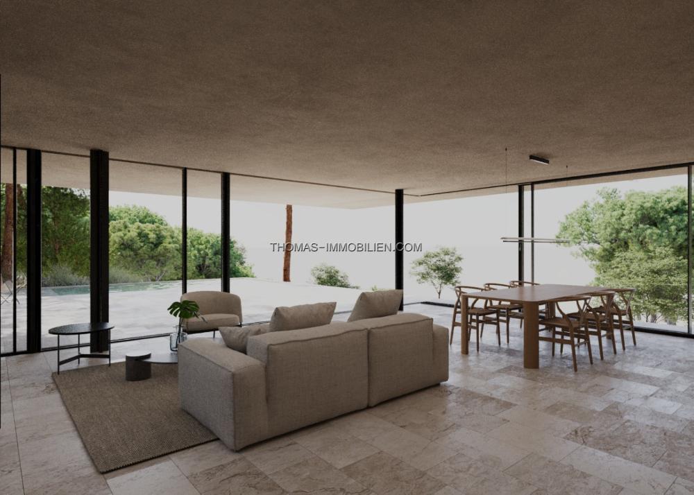 Im Bau befindliche Villa in einem minimalistischen, modernen Stil von 253 m2, verteilt auf 227 m2 Erdgeschosswohnungen einschließlich Veranda und 26 m2 Keller. Es befindet sich auf einem Grundstück von 800 m2 mit guter Aussicht in einem natürlichen Gebiet, das von großen Bäumen umgeben ist. Das Haus wird in einem Stil gebaut, der sich in die Landschaft einfügt, mit imitierten Betonwänden und Natursteindekorationen auf eine Weise, die hochmoderne Elemente mit einem traditionellen rustikalen Touch kombiniert, wie in den 3D-Bildern gezeigt. Das Erdgeschoss besteht aus einem großen verglasten Wohnzimmer mit offener Küche, Flur, 3 Schlafzimmern, 2 Bädern, eines davon en suite im Hauptschlafzimmer, Service-WC und breiter überdachter Veranda in Form eines Auslegers ohne Säulen, der die Poolterrasse überblickt. Eine Klimaanlage warm-kalt ist im ganzen Haus vorhanden. Im Preis inbegriffen sind ein Swimmingpool 9,45 x 3,30 Meters wie in den Plänen gezeigt. Eine betonierte Zufahrt zum Haus und Parkplätze für mehrere Autos sind ebenfalls im Preis inbegriffen, ebenso wie die Metallumzäunung des Grundstücks. Küchenmöbel und -geräte werden vom Kunden ausgewählt und bezahlt. Für weitere Informationen wenden Sie sich bitte an unsere Verkaufsteam.