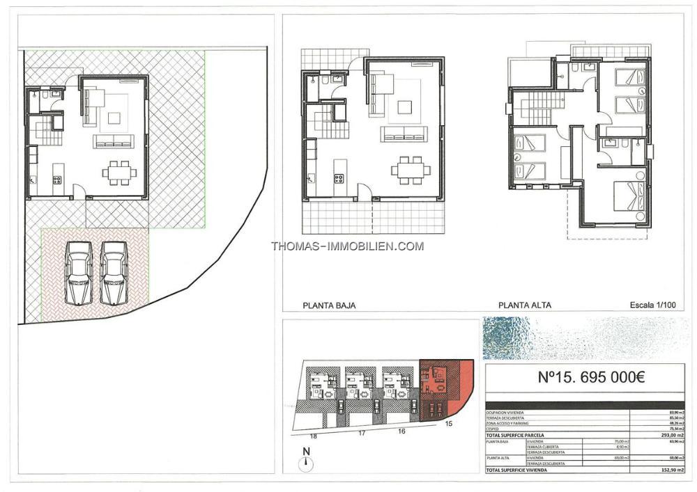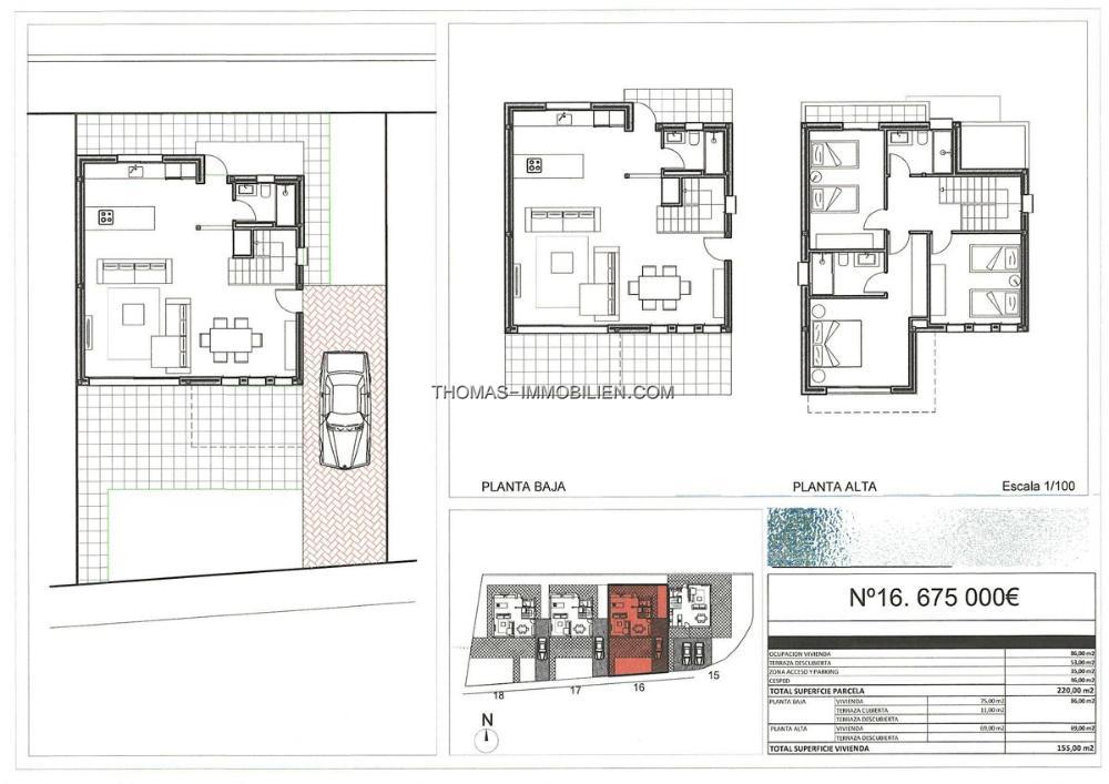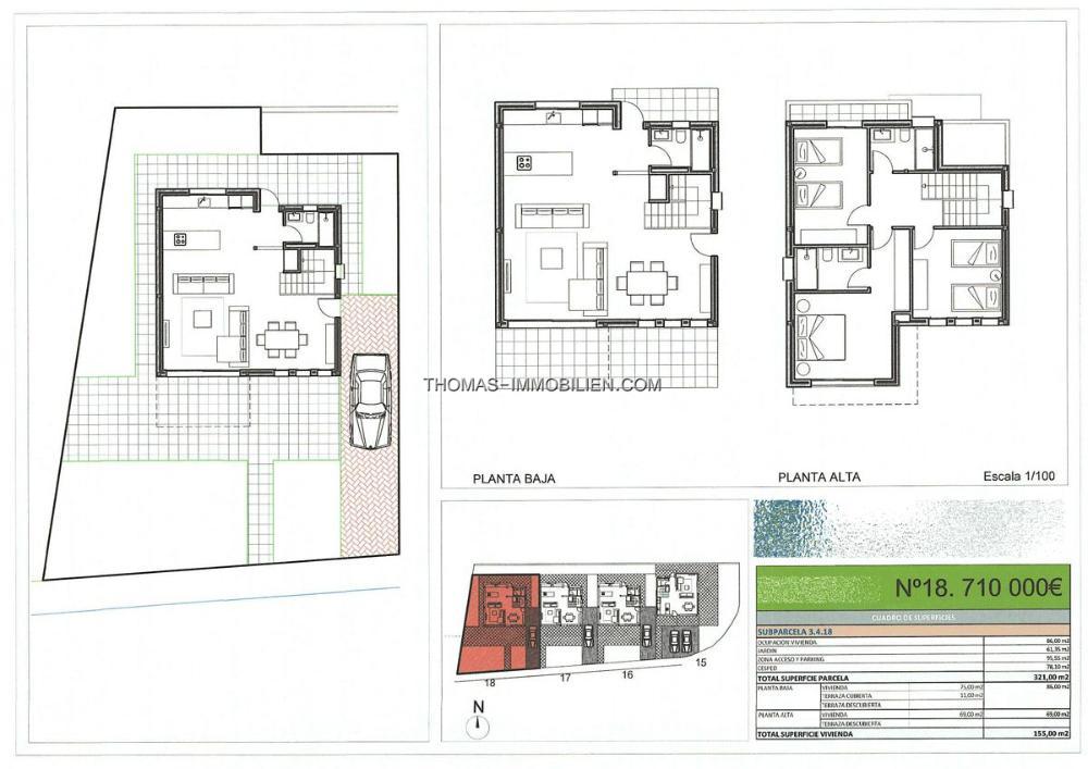 Zum Verkauf und im Bau befinden sich vier exklusive Einfamilienhäuser, die durch ihr modernes und funktionales Design hervorstechen. Jedes Haus wird Zugang zu dem weitläufigen Gemeinschaftspool haben, der ideal zum Entspannen und Genießen des mediterranen Klimas ist, wird aber auch über einen eigenen nach Süden ausgerichteten Garten verfügen, der Privatsphäre und natürliches Licht den ganzen Tag über garantiert. Details, die den Unterschied ausmachen: Diese Häuser sind so gestaltet, dass sie maximalen Komfort bieten: 3 Schlafzimmer und 3 Badezimmer, ideal für Familien oder für diejenigen, die weite und vielseitige Räume suchen. Parzellen zwischen 220 m² und 320 m², die Raum und Möglichkeiten bieten, deinen Außenbereich zu personalisieren. Bau mit hochwertigen Materialien, die sorgfältig ausgewählt wurden, um Langlebigkeit, Stil und Nachhaltigkeit zu gewährleisten. Jedes Haus beinhaltet einen eigenen privaten Garten und einen unabhängigen Parkplatz, der Komfort und Sicherheit gewährleistet. Ein Zuhause mit allem, was du brauchst, nur einen Schritt vom Zentrum Denias entfernt, bist du nah an Restaurants, Geschäften, Stränden und all den Dienstleistungen, die diese Stadt so besonders machen. Gleichzeitig wirst du die Ruhe eines Wohngebiets genießen, das für deine Erholung und dein Wohlbefinden gestaltet wurde. Erste Lieferung Ende Sommer 2025 und die Einheiten im Januar 2026. PREISE: