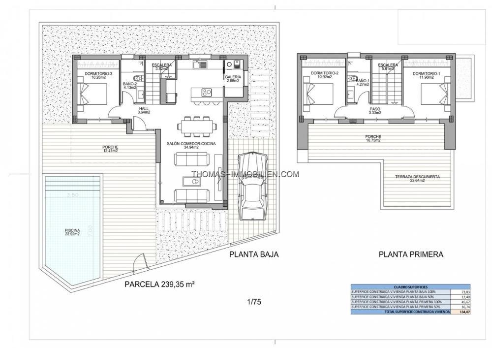 NEUBAU MODERNE VILLEN IN BENIJOFAR Neubauvillen in Benijófar, einer privilegierten Gegend der Costa Blanca, ausgestattet mit allen Dienstleistungen, 20 Minuten vom Flughafen Alicante entfernt, in der Nähe der schönen Strände von Guardamar und mehrerer Golfplätze. Es ist eine moderne Villa bestehend aus einem geräumigen Wohn-Esszimmer mit offener Küche, 3 Schlafzimmern (eines davon en-suite) und 2 Badezimmern. Es hat auch ein privates Grundstück mit Terrasse, Parkplatz, privatem Pool, Garten im mediterranen Stil mit toller Aussicht. Das Haus hat auch Klimaanlage warm/kalt, Video-Gegensprechanlage und Sicherheitstür. Benijofar ist ein schönes Dorf mit einer charmanten Kirche und allen Dienstleistungen wie Supermärkten, Apotheken, Banken, Restaurants und einem Naturpark in unmittelbarer Nähe der Villen. Es gibt mehrere Golfplätze in der Nähe sowie Wasserparks in den nahe gelegenen Rojales und Torrevieja. Benijófar liegt nur wenige Minuten von der N-332 und der AP-7 entfernt. Nur 30 Minuten vom Flughafen Alicante, 10 Minuten von den Stränden von Guardamar und Torrevieja entfernt.