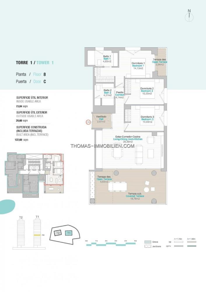 NEU GEBAUTE WOHNUNGEN MIT MEERBLICK IN CALPE Neubau Wohnanlage mit 1, 2 und 3 Schlafzimmer Wohnungen mit großen Terrassen in Calpe. Zwei Türme von 18 Etagen mit schönen Wohnungen mit Blick auf das Meer und den Salzsee von Calpe. Komplette Installation von kanalisierten Klimaanlagen, mit Pumpe von Kälte und Wärme, durch aerothermische Kontrolle Thermostat im Wohnzimmer. Große Gemeinschaftsbereiche mit Gärten, Schwimmbad, Paddle-Tennis, Kinderbereich. Im 11. Stock des Turms 1: Infinity-Pool, Sauna, Fitnessraum und Chill-Bereich mit Meerblick. Calpe, einer der Orte der La Marina Alta, liegt an der Nordküste der Provinz Alicante, umgeben von den Orten Altea, Benidorm, Teulada-Moraira und Benissa. Calpe bietet eine wunderbare Mischung aus alter valencianischer Kultur und modernen touristischen Einrichtungen. Es ist ein idealer Ausgangspunkt, um die Umgebung zu erkunden oder die vielen Strände zu genießen. Allein in Calpe gibt es drei der schönsten Sandstrände an der Küste. Calpe hat auch zwei Segelclubs: Real Club Náutico de Calpe und Club Náutico de Puerto Blanco. Das Fischerdorf Calpe, das sich zu einem Touristenmagneten entwickelt hat, befindet sich in idealer Lage und ist über die Autobahn A7 und die N332, die von Valencia nach Alicante führt, leicht zu erreichen. Der Flughafen von Alicante ist etwa eine Stunde und der Flughafen von Valencia 1,5 Stunden entfernt.