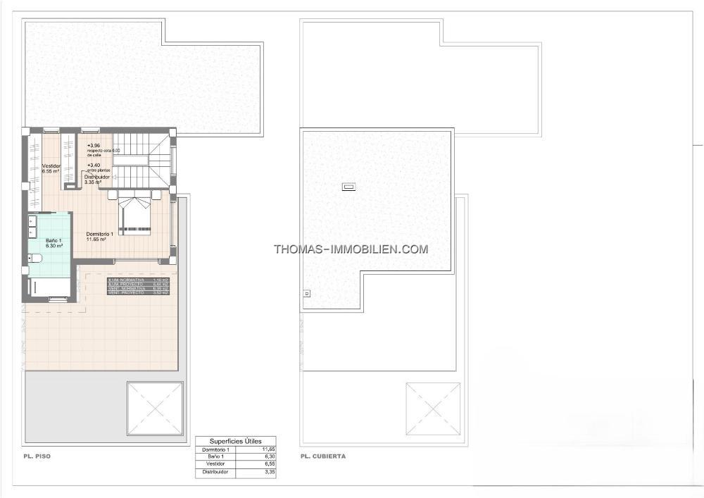 Villen bauen über 2 Etagen und haben 3 Schlafzimmer, 3 Bäder, eine offene Küche mit Wohnzimmer, Einbauschränke, Terrassen, privaten Garten mit dem Pool und Parkplatz.