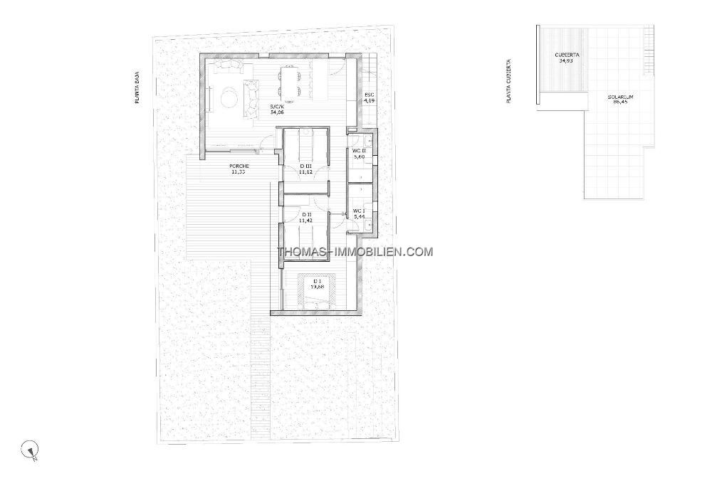 Villen bauen über 1 Stockwerk, hat 3 Schlafzimmer, 2 Bäder, offene Küche mit geräumigem Wohnzimmer, Einbauschränke, Terrasse und private Solarium.
