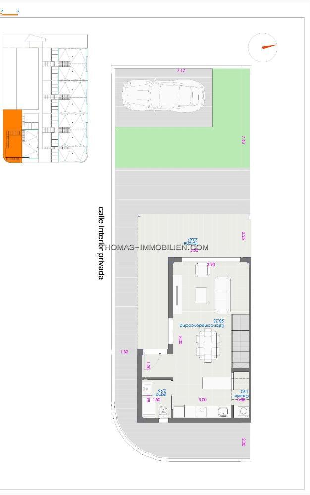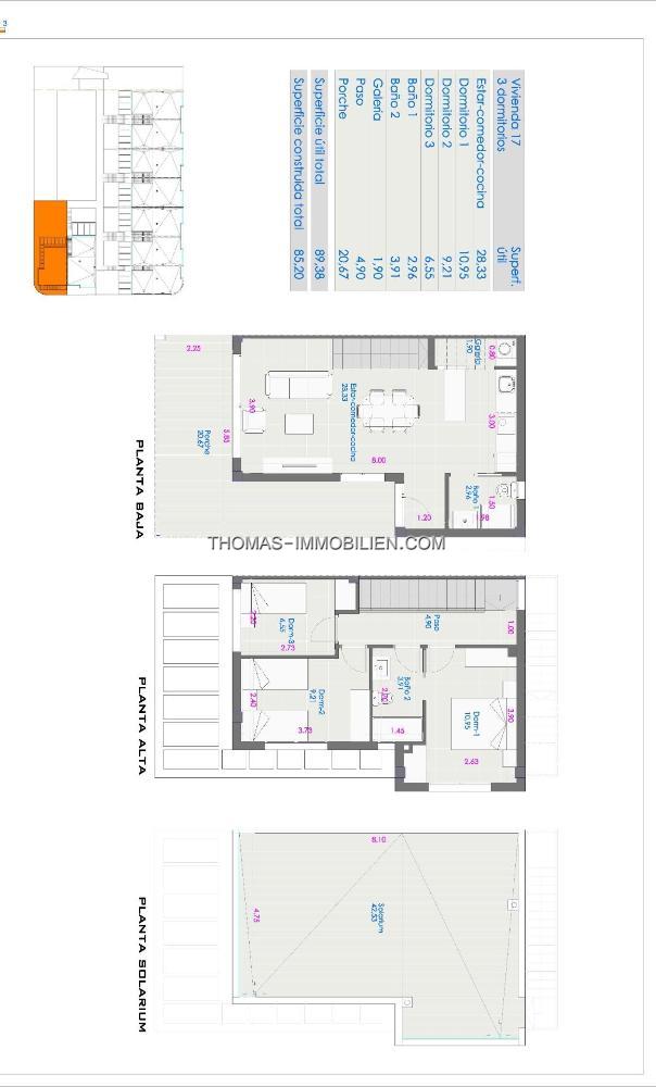 Neubau Stadthäuser verfügt über 3 Schlafzimmer, 2 Bäder, offene Küche mit Wohnzimmer, Einbauschränke, Terrasse und Solarium, privaten Garten.