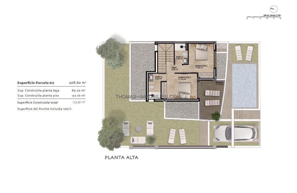 Mit seinem großen Grundstück, haben die Häuser einen Garten mit einem separaten Pool und einen Parkplatz auf dem Grundstück.
