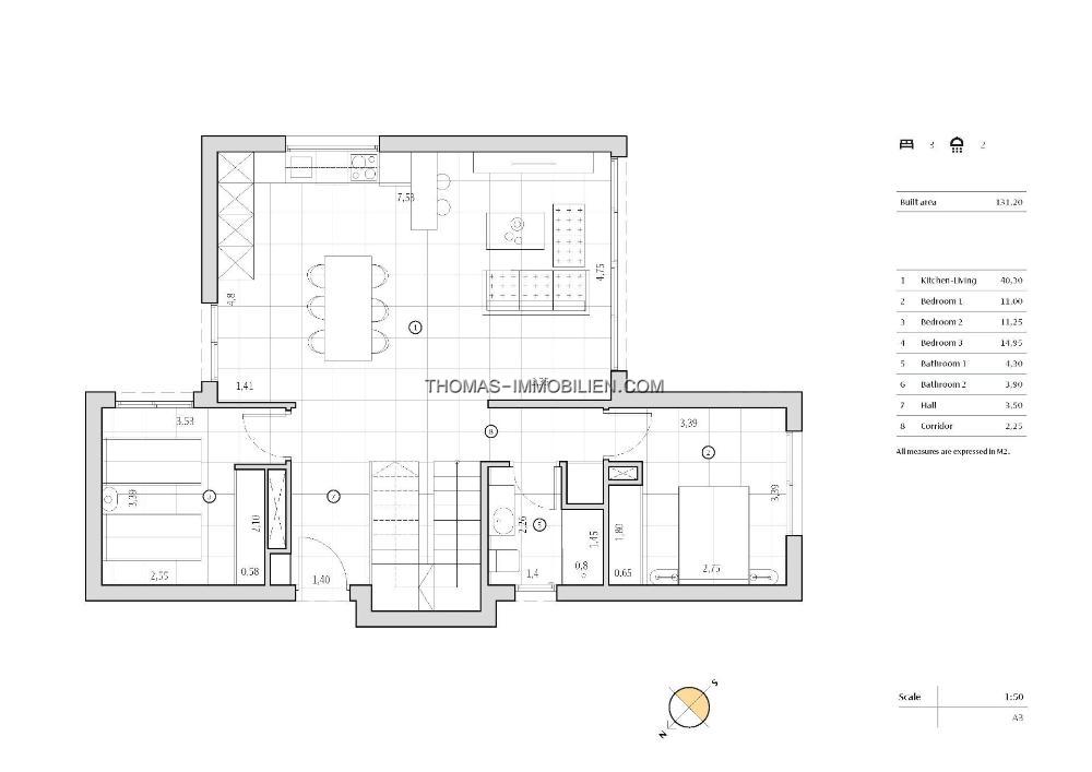 Villen bauen über 2 Etagen, hat 3 Schlafzimmer, 2 Bäder, offene Küche mit Wohnbereich, wo sind große Fenster mit direktem Zugang zur Terrasse und den Pool.