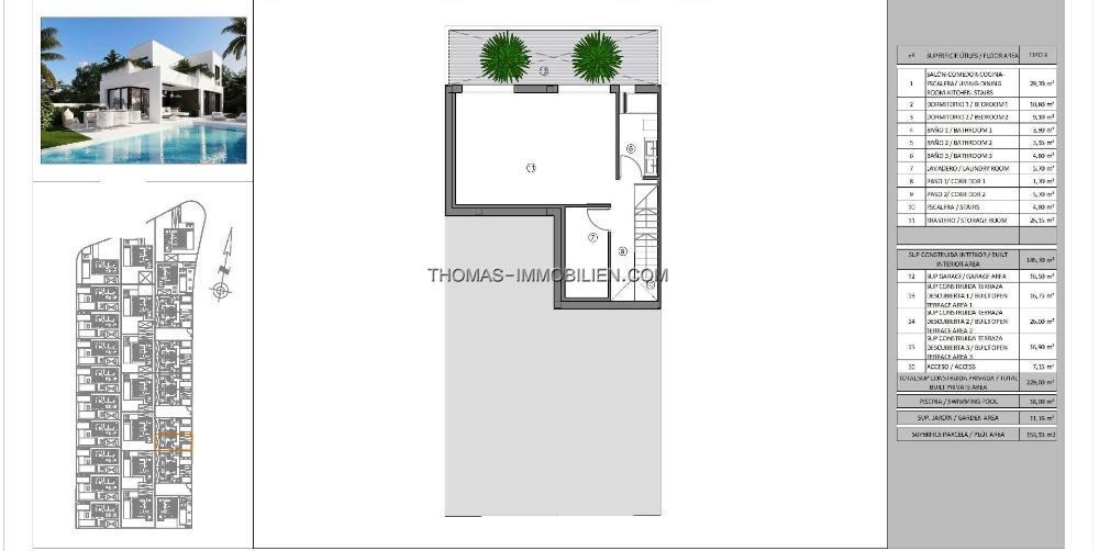 Die Villen wurden in einem modernen Stil entworfen, der das natürliche Licht und den Panoramablick optimal nutzt. Sie können zwischen verschiedenen Modellen mit 2 bis 4 Schlafzimmern wählen, und einige Modelle verfügen über ein Untergeschoss mit englischem Patio, das die Möglichkeit bietet, weitere Schlafzimmer hinzuzufügen.