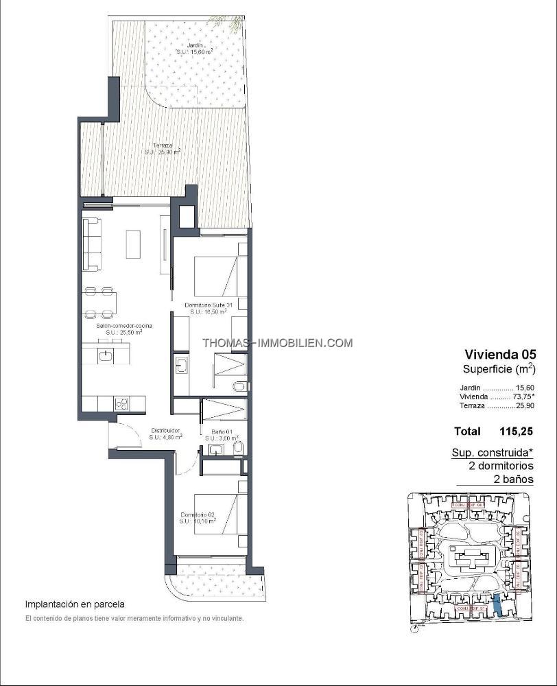 Die Wohnungen im Erdgeschoss verfügen über private Gärten, während die Wohnungen im Obergeschoss über private Solarien mit Vorinstallation für einen Whirlpool und eine Außendusche verfügen. Darüber hinaus verfügt die Anlage über Gemeinschaftspools, die von Gärten umgeben sind und eine perfekte Umgebung für Entspannung und Geselligkeit schaffen.