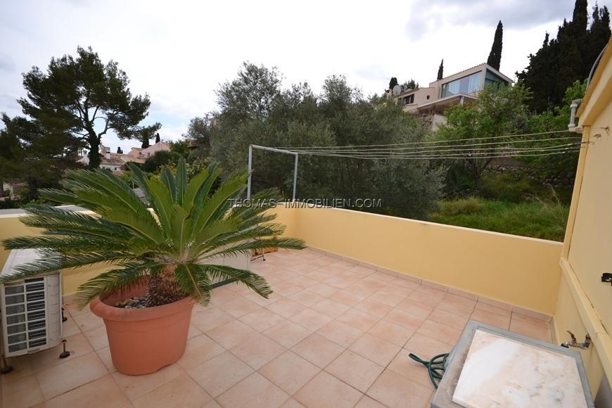 Bestehend aus 3 Doppelschlafzimmern, 2 Bädern (1 ensuite), Wohn-Esszimmer mit offener Küche, Hauswirtschaftsraum und mehreren Terrassen, eine davon mit Grill.