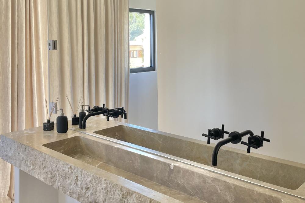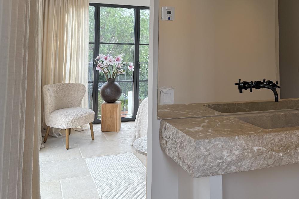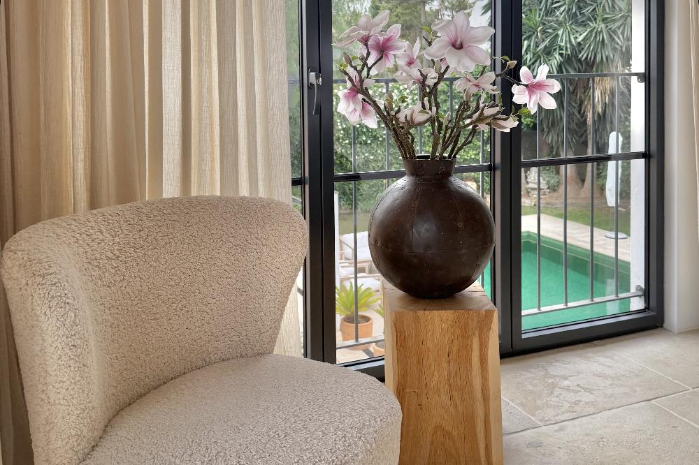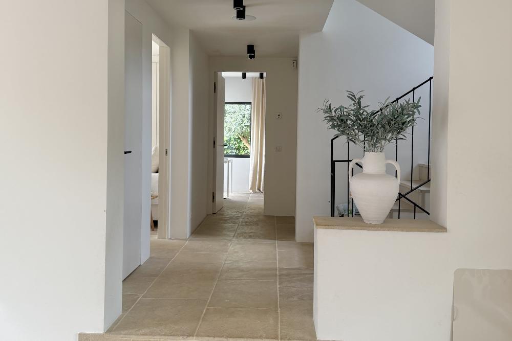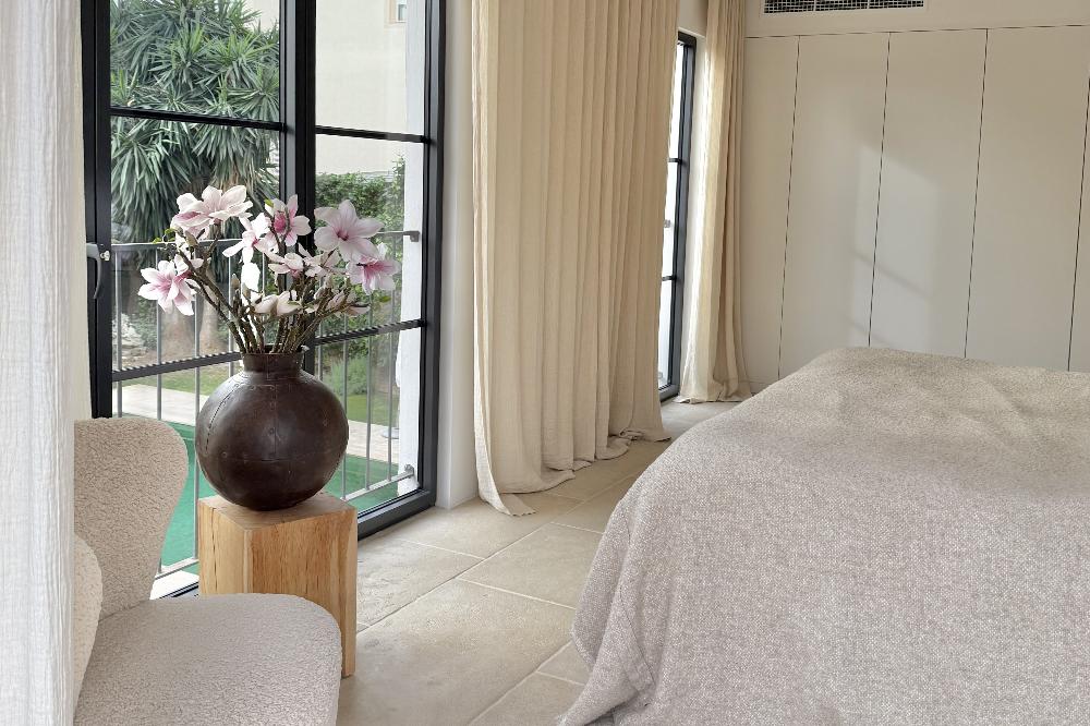 In der luxuriösen Nachbarschaft von Pueblo Espanol gelegen, vereint dieses außergewöhnliche Haus zeitlose mediterrane Architektur mit moderner skandinavischer Raffinesse. Ursprünglich 1981 von einem renommierten spanischen Architekten entworfen und 2019 unter der Leitung der europaweit bekannten Innenarchitektin Lotta Agaton aufwendig renoviert, bietet diese Residenz eine seltene Kombination aus Geschichte, Eleganz und Komfort. Mit einer Wohnfläche von ca. 250 Quadratmetern ist das Haus für ein nahtloses Indoor-Outdoor-Leben konzipiert. Ein handgeschlagener marokkanischer Kalksteinboden durchzieht das gesamte Haus und verleiht jedem Raum eine natürliche, weiche Eleganz. Großzügige französische Fenster im dänischen Design durchfluten das Interieur mit Licht und öffnen sich zu einer weitläufigen Terrasse mit Sitzplätzen für 14 Personen – ideal für stilvolle Dinner im Freien. Das Herzstück bildet eine maßgefertigte Küche, vor Ort von einem schwedischen Tischler gebaut. Ausgestattet mit mallorquinischen Marmorarbeitsplatten, einem Esstisch für zehn Personen und hochwertigen Armaturen von Dornbracht (Deutschland), erfüllt sie höchste Ansprüche. Im Wohnzimmer finden sich ikonische Möbelstücke von Dux (Schweden) und Living Divani (Italien), während das Hauptschlafzimmer mit einem Bett von Hästens und die Gästezimmer mit luxuriösen IKEA-Modellen ausgestattet sind. Weitere Highlights: wasserbasierte Fußbodenheizung im gesamten Haus, Klimaanlage in allen Räumen und integriertes Sonos-Soundsystem. Im Außenbereich wartet ein 9 x 4,5 Meter großer Pool, umgeben von hochwertigen dänischen Designmöbeln von Skagerak und Fritz Hansen. Eine 140 Quadratmeter große Garage rundet das Anwesen ab. Zusätzliche Designelemente wie Deckenlampen und Tische von Cassina (Italien) sowie Teppiche von Layred vervollständigen das harmonische, luxuriöse Gesamtbild.