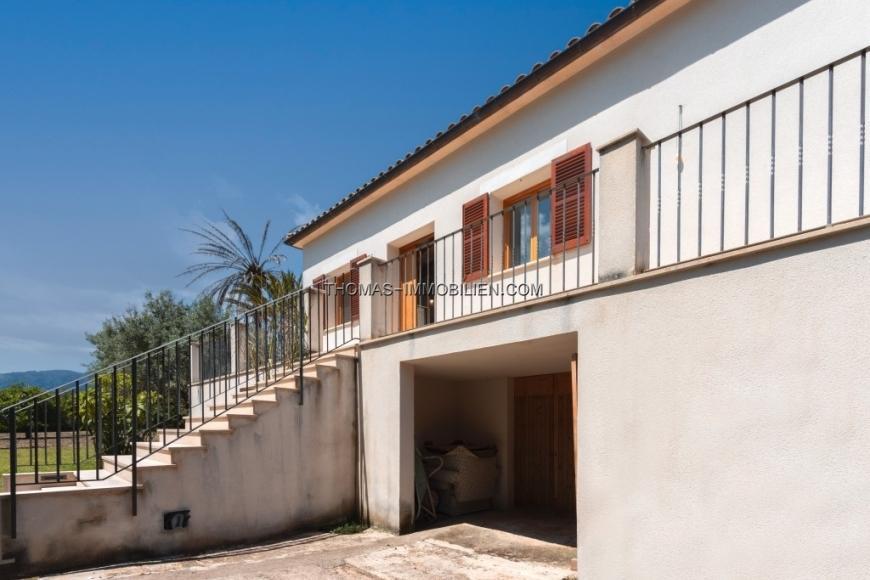 Diese neu renovierte Villa mit 3 Schlafzimmern und 3 Bädern bietet die perfekte Mischung aus modernem Komfort und traditionellem mallorquinischem Charme. Nur wenige Minuten von Pollença entfernt, genießt das Anwesen eine privilegierte Lage, umgeben von natürlicher Schönheit und Aussicht. Die Villa verfügt über einen offenen Wohnbereich mit hohen Decken und großen Terrassentüren, die auf einen Balkon mit Blick auf den Puig de Maria führen. Das Anwesen verfügt über 3 Doppelschlafzimmer und 3 Bäder, wobei eines der Bäder als En-Suite zum Hauptschlafzimmer dient. Die helle Küche hat einen Zugang zur Terrasse und einen Eckplatz für den Esstisch im Inneren. Sie ist offen neben dem Wohnzimmer angelegt und mit modernen Geräten ausgestattet. Das Design sorgt dafür, dass die Küche ein funktioneller Raum bleibt, in dem die Familie das tägliche Leben genießen kann. Das Kellergeschoss bietet reichlich Platz für Stauraum. Im Außenbereich befindet sich die Immobilie auf einem großzügigen Grundstück mit altem Baumbestand, das Ruhe und ein Leben auf dem Land bietet, ohne zu weit von der Stadt entfernt zu sein. Das Anwesen verfügt über einen Swimmingpool mit Rasenfläche und Blick auf den Puig de Maria. Es gibt auch ein großes Nebengebäude, das derzeit als Lagerraum genutzt wird. Obwohl erst kürzlich renoviert, sind einige Arbeiten noch nicht abgeschlossen, wenn auch geringfügig.Die Stadt ist zu Fuß zu erreichen.