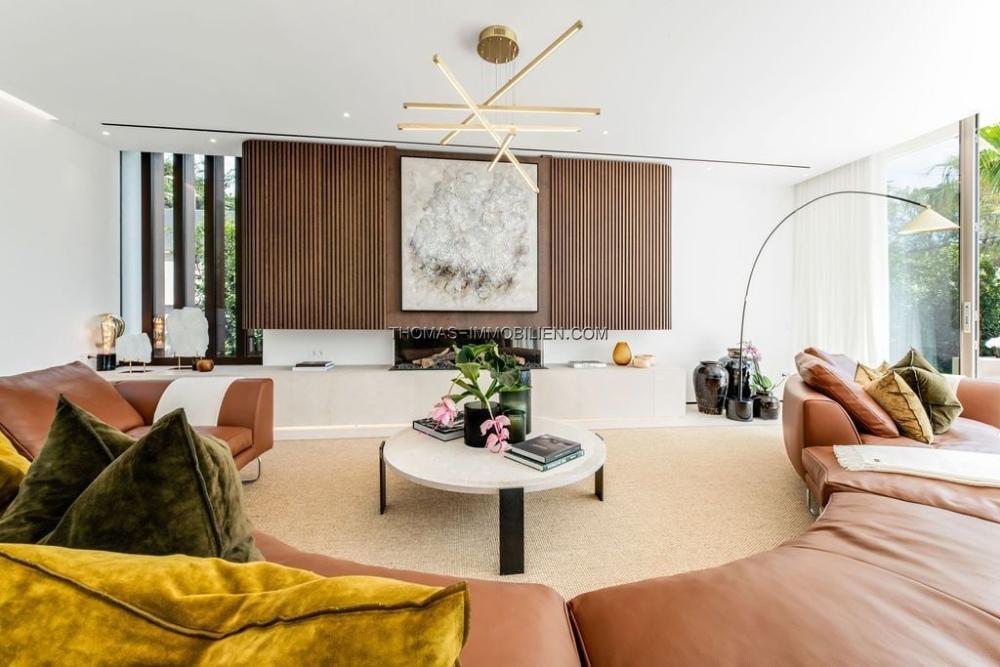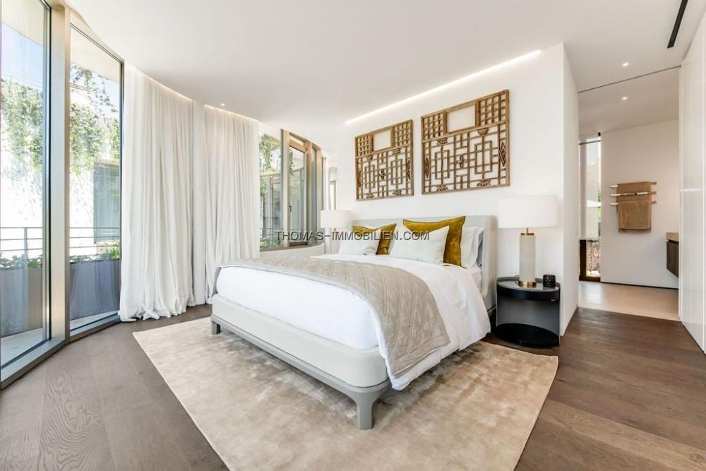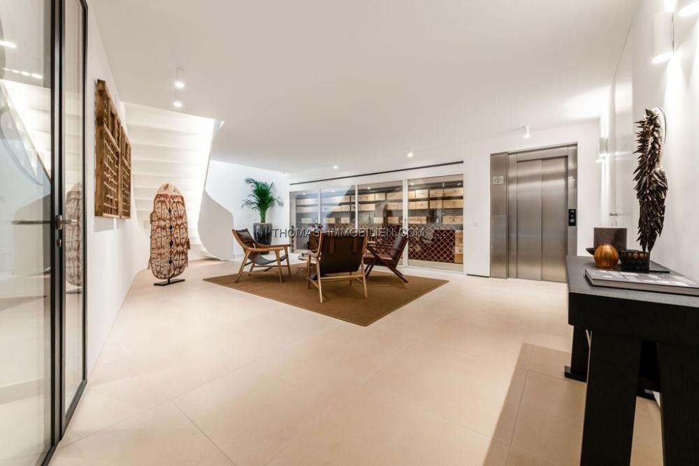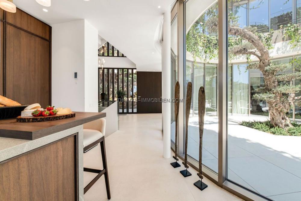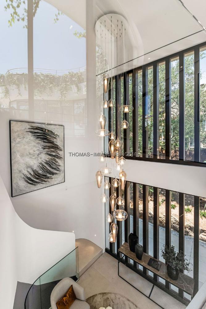 Diese moderne Villa ist mit elektrischen Vorhängen, Jalousien und versteckten Audiofunktionen ausgestattet, die den Wohnräumen einen Hauch von Eleganz verleihen. Die voll ausgestattete Küche ist eine Freude für den Koch, während die Waschküche und der Weinkeller auf praktische Bedürfnisse eingehen. Für umweltbewusste Bewohner steht außerdem eine Ladestation für Elektroautos zur Verfügung.