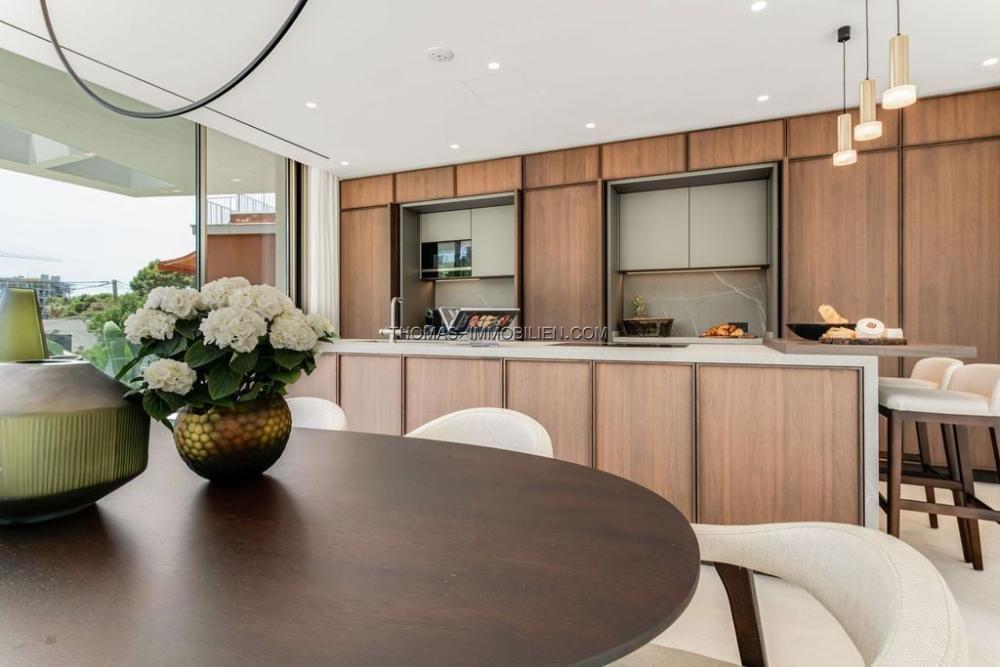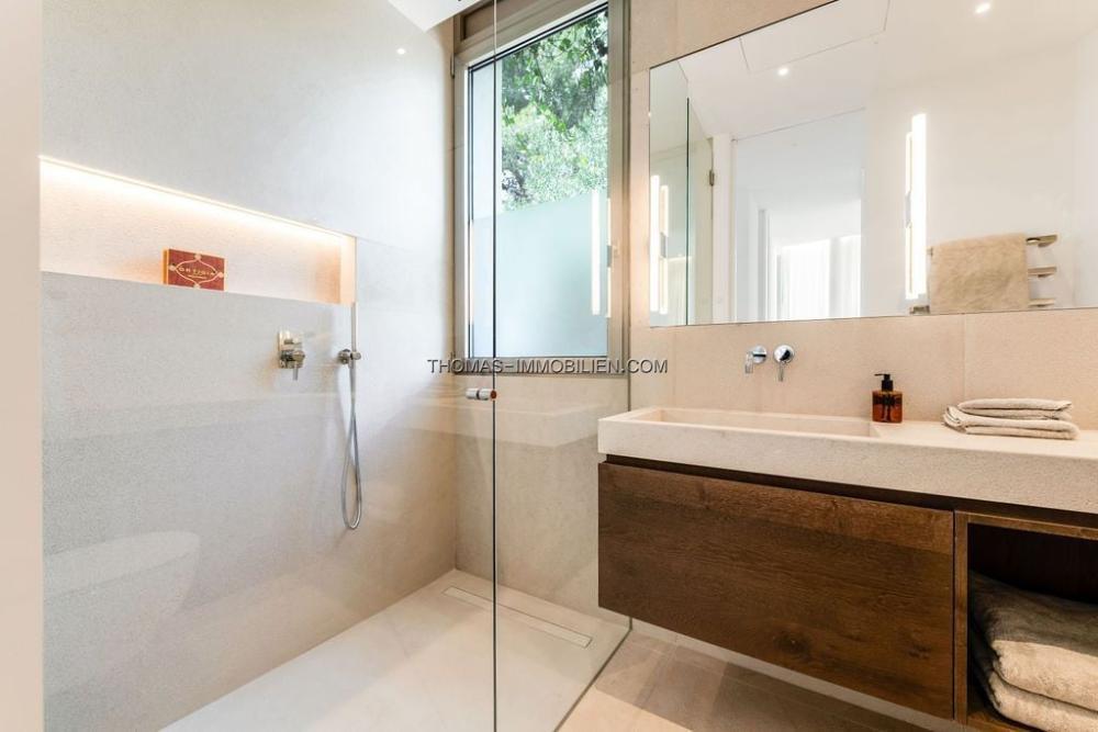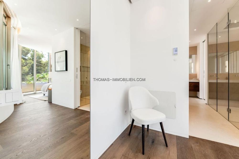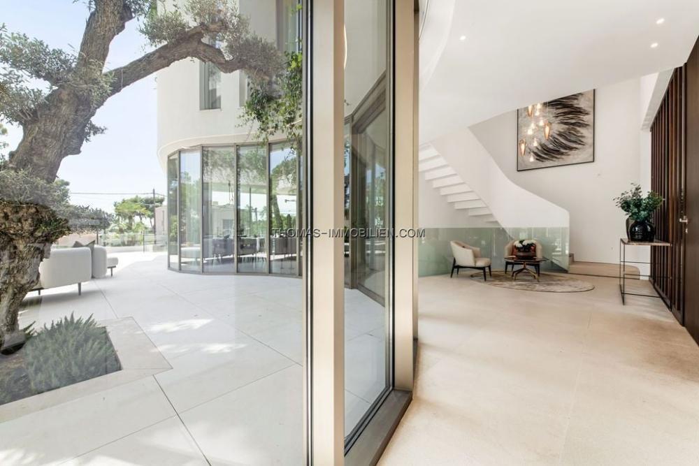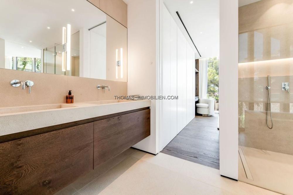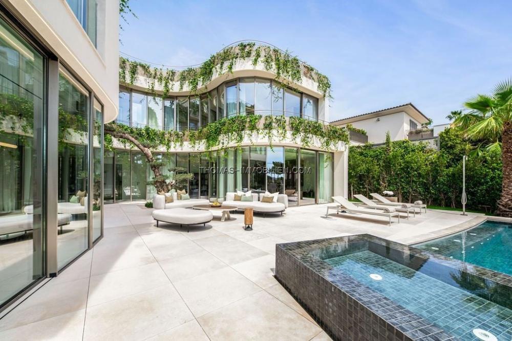 Diese moderne Villa ist mit elektrischen Vorhängen, Jalousien und versteckten Audiofunktionen ausgestattet, die den Wohnräumen einen Hauch von Eleganz verleihen. Die voll ausgestattete Küche ist eine Freude für den Koch, während die Waschküche und der Weinkeller auf praktische Bedürfnisse eingehen. Für umweltbewusste Bewohner steht außerdem eine Ladestation für Elektroautos zur Verfügung.