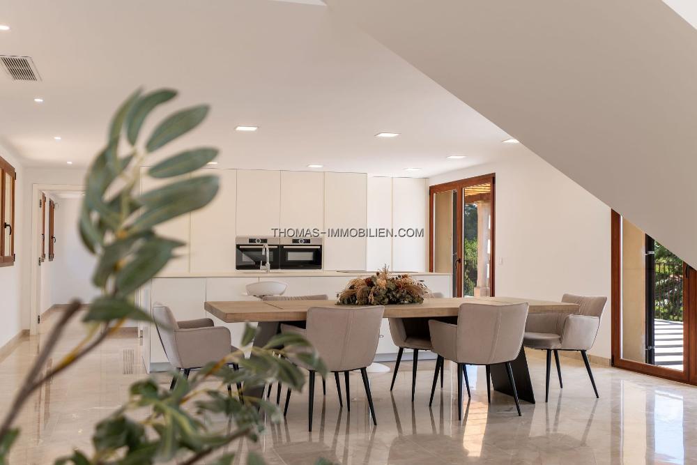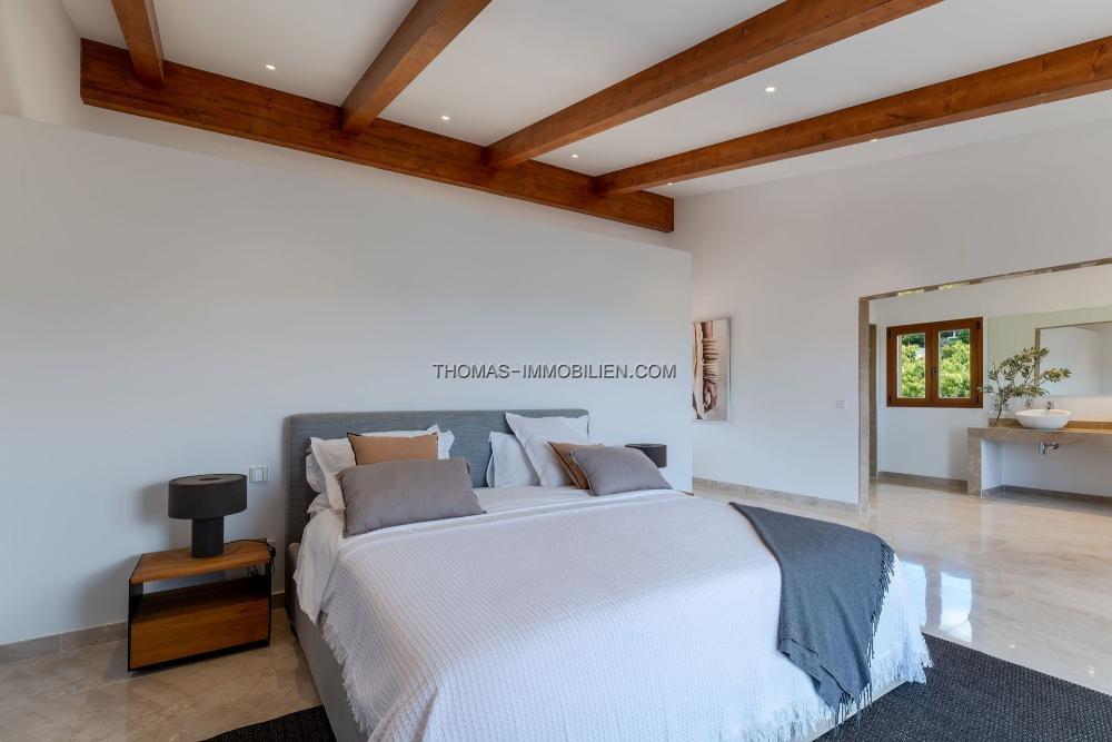 Die Villa verfügt über vier geräumige Schlafzimmer, jedes mit eigenem Bad, was Privatsphäre und Komfort für alle Bewohner gewährleistet. Der Grundriss ist so gestaltet, dass er einen nahtlosen Übergang zwischen Innen- und Außenbereichen bietet, mit großen Fenstern, die den atemberaubenden Blick auf die Berge und das Meer einrahmen. Die Wohnbereiche sind hell und luftig und bieten eine einladende Atmosphäre für Entspannung und Unterhaltung.
