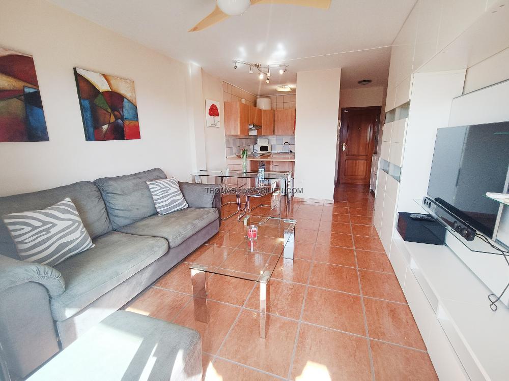 Im Inneren der Wohnung befinden sich eine voll ausgestattete Küche und ein stilvoll eingerichtetes Wohnzimmer, das auf einen Balkon führt, sowie ein Doppelschlafzimmer mit Einbauschränken, Zugang zur Terrasse und ein komplettes Badezimmer.