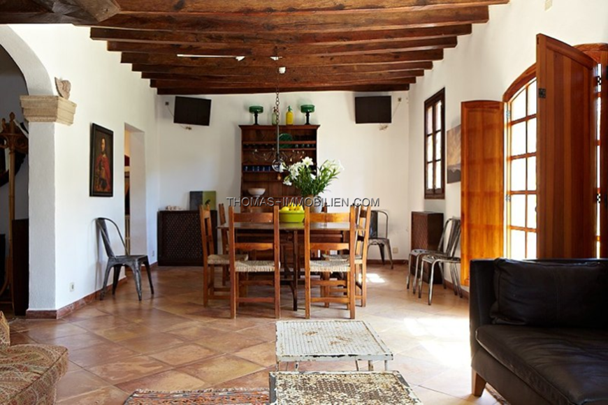 Can Martorell besteht aus einem Haupthaus und drei Gästehäusern. Das Haupthaus: Von der Terrasse tritt man in ein gemütliches Wohnzimmer mit Kamin. Das Esszimmer führt zu der voll ausgestatteten Küche und Waschraum. Eine Ebene höher befindet sich ein separates Wohnzimmer mit Steinmauern. Auf dieser Ebene gibt es ein Schlafzimmer und ein separates Badezimmer mit Dusche. Auf der ersten Etage befinden sich drei Doppelzimmer und ein Einzelzimmer, zwei Badezimmer mit Dusche.