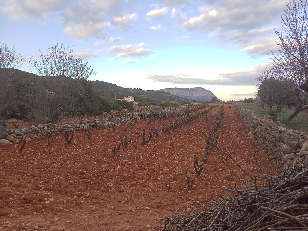 Bebaubar: 2% Beschreibung: Bebaubares Grundstück von insgesamt 15.400 m² zwischen Gata de Gorgos und Lliber. Es können 2% der Gesamtfläche bebaut werden. Das Grundstück setzt sich zusammen aus 5 ebenen, terrassenförmigen Parzellen mit geringem Höhenunterschied, auf denen momentan Weinreben-Anbau betrieben wird. Wasser und Stromanschluss befinden sich nahe der Grundstücksgrenze. Von der Regionalstraße führt ein 25m langer Feldweg an das Grundstück. Eine schöne, ruhige Lage inmitten der Natur mit Blick auf den Montgó. Die Orte Gata de Gorgos und Lliber mit allen erdenklichen Dienstleistungen sind etwa 10, Javea und Denia mit seinen schönen Sandstränden in 25 Autominuten erreichbar. Strom und Wasseranschluss nahe der Grundstücksgrenze