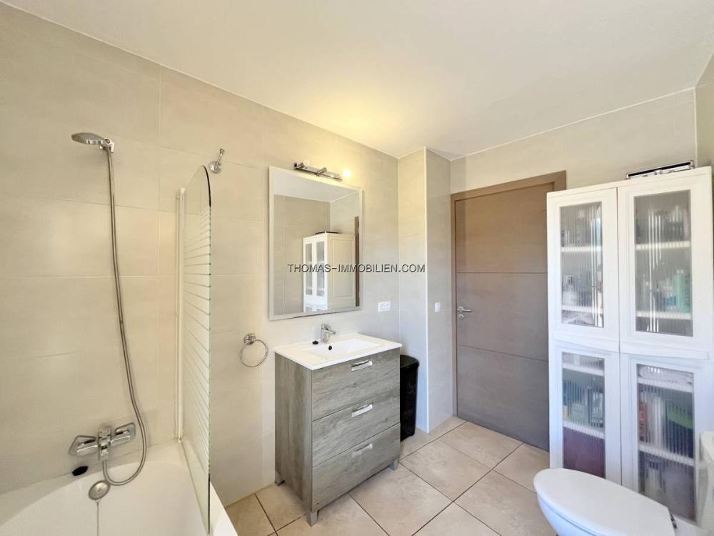 Das Zuhause bietet insgesamt ca. 144 m², mit großen Terrassen und Park Möglichkeiten drumherum.  Es liegt auf einem Grundstück von ca. 720m² mit mehreren Lagerräumen etc. Die Wohnung bietet drei Doppelschlafzimmer (eines mit Ankleidezimmer), ein Schlafzimmer/Büro, zwei Badezimmer, eine Wintergarten von ca. 23m², ein Wohn-Esszimmer mit Holzofen und eine große Küche. Komplett renoviert und in einem tadellosen Zustand. Ausgestattet mit einem Wasserenthärter und einem kleinen Swimmingpool. Derzeit keine Bewohnbarkeitsbescheinigung vorhanden.