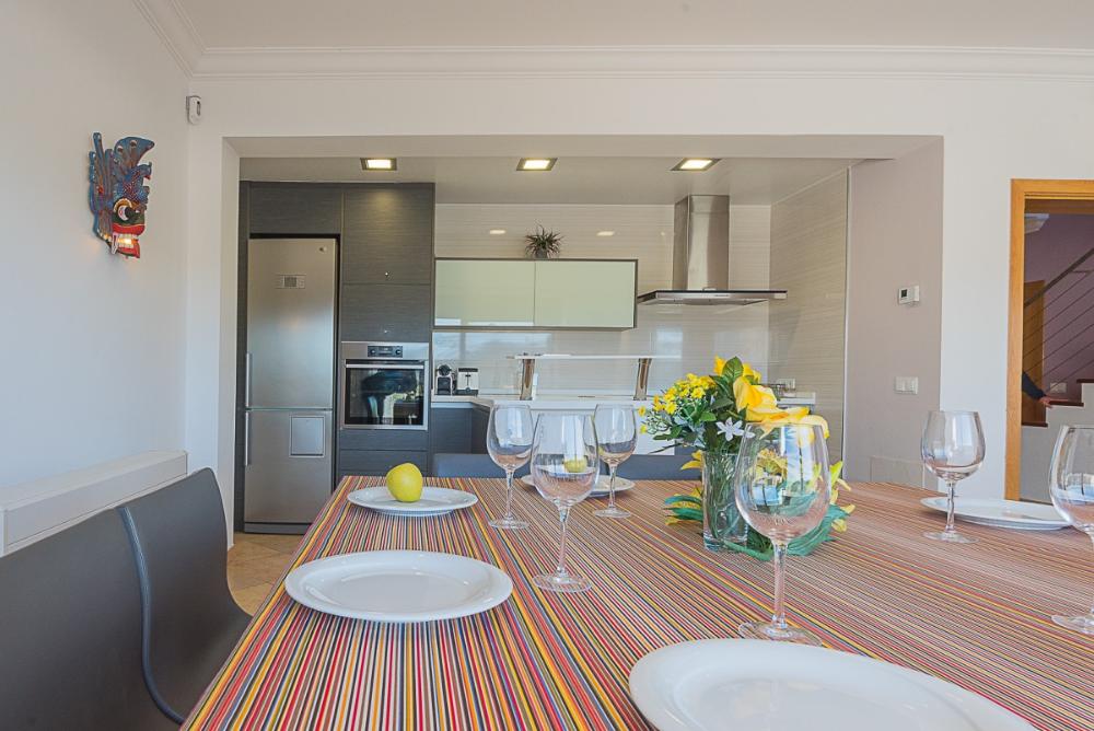 Dieses schöne Haus befindet sich am Ortsrand von Porreres, in ruhiger Lage und mit schöner Sicht. Das Grundstück umfasst 260 qm davon ca. 100 qm Sonnenterrasse mit Pool und eine 160 qm große Garage mit Küchenzeile und Badezimmer. Auf der ersten Etage befindet sich die Eingangshalle, der großzügige Wohn- und Essbereich, eine voll ausgestattete Küche, zwei Doppelschlafzimmer, ein weiteres kleineres Zimmer sowie ein Badezimmer. Alle Zimmer haben Zugang zur Terrasse oder dem Balkon. Auf der oberen Ebene befindet sich das Hauptschlafzimmer mit Ankleidezimmer und Badezimmer en Suite mit Jacuzzi sowie ein Studio von ca. 15 qm. Beide Zimmer haben ebenfalls Zugang zu einem Balkon. Weitere Ausstattungsmerkmale: Zentralheizung, Klimaanlage, Internet, Satellitenanlage, zwei Kühlschränke, ein Gefrierschrank, Geschirrspüler, zwei Waschmaschinen, ein Trockner und Küchenutensilien.