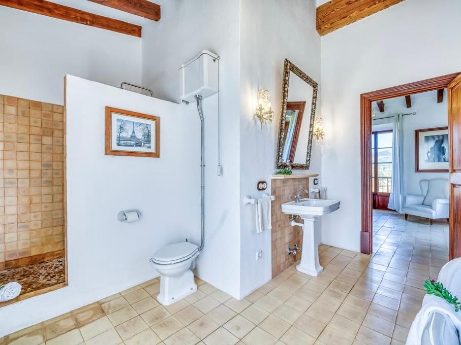 Die Villa kann möbliert oder unmöbliert gemietet werden. Fantastische Villa aus Naturstein mit 400 qm Wohnfläche auf einem 15.000 qm großen Grundstück, am Ortsrand von Binissalem gelegen. Die Immobilie ist sehr hochwertig und traditionell eingerichtet. Der großzügige Eingangsbereich auf zwei Ebenen führt in die voll ausgestattete, große Küche mit angrenzendem Esszimmer und Wohnbereich. Auf der gleichen Ebene befinden sich ein Schlafzimmer und ein Badezimmer mit großer Dusche. Eine galerieartige Treppe führt zu drei weiteren geräumigen Doppelschlafzimmern und zwei Badezimmern, von denen eines ein eigenes Bad hat. Der Pool mit Blick in die Natur, der große und moderne Grill, der gepflegte Rasen und die überdachte Terrasse runden dieses außergewöhnliche Anwesen ab. Der mittelalterliche Ortskern mit Einkaufsmöglichkeiten sowie zahlreichen Bars und Restaurants ist in wenigen Gehminuten zu erreichen.
