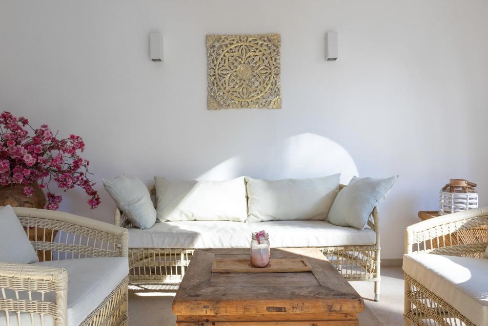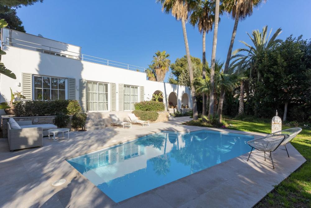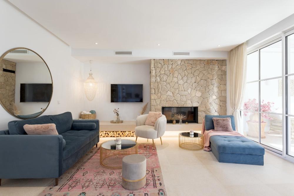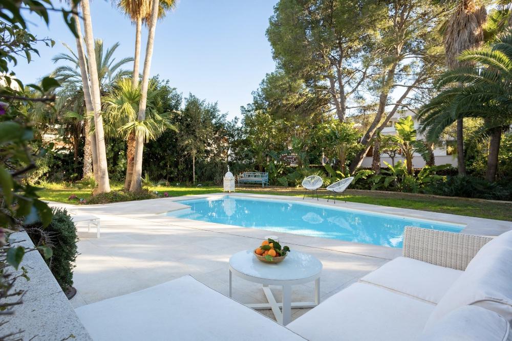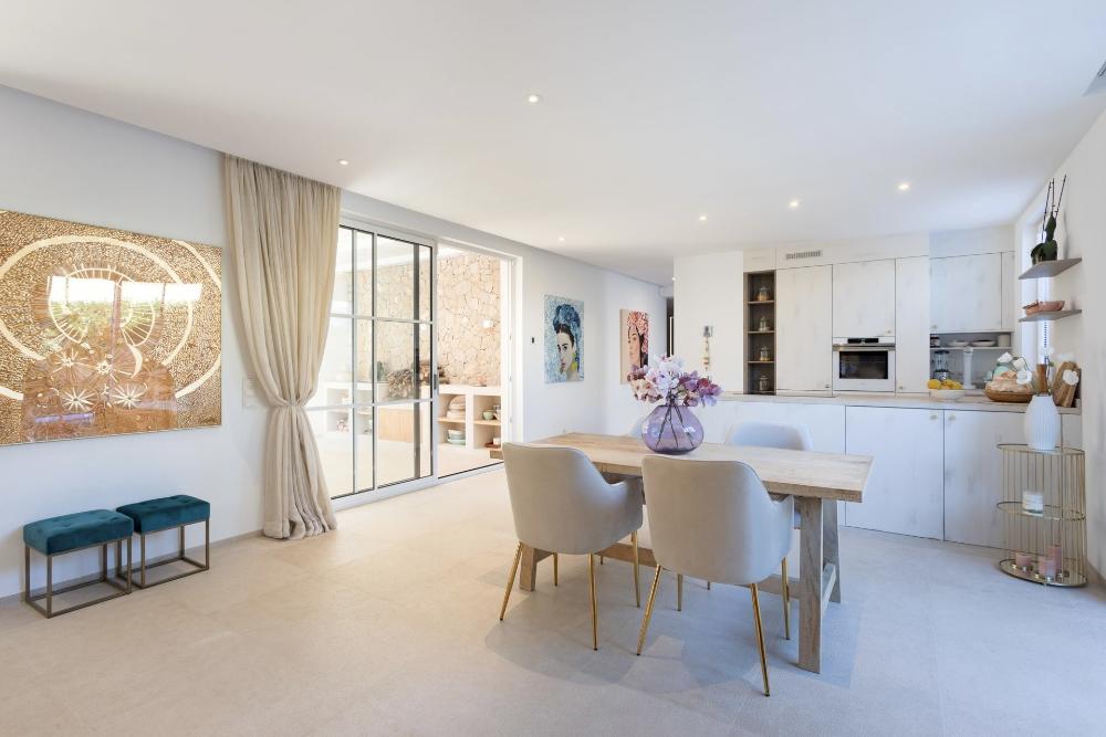 Dieses wunderschöne, sehr moderne und luxuriöse Haus von ca. 218 qm ist in eine offene Küche mit einem großzügigen Ess- und Wohnbereich aufgeteilt. Der Flur führt zu 3 Schlafzimmern, einem Hauptschlafzimmer mit Bad en-suite und einem weiteren separaten Gästezimmer mit Gäste-WC. Die schönen Natursteinböden, die glamourösen Möbel und das Dekor schaffen ein dauerhaftes Urlaubsgefühl der Entspannung und guten Energie. Von allen Schlafzimmern und Teilen des Wohnbereichs haben Sie Zugang zum Garten, der mit schönen wilden Bananen und Palmen bepflanzt ist und zum 30 qm großen Salzwasserpool führt, in dem Sie in den wärmeren Sommermonaten ein erfrischendes Bad nehmen können. Es gibt auch eine überdachte Terrasse mit einem Sitzbereich und einem großen und schönen Esstisch aus Holz, wo Sie das ganze Jahr über im Freien speisen können.\nDas Haus verfügt über ein separates Gästestudio mit Bad, das über eine separate Außentreppe zu erreichen ist. Es gibt eine große und sonnige Terrasse von über 40 qm, auf der Sie die Sonne genießen oder sogar Yoga bei Sonnenuntergang praktizieren können. Das Haus ist komplett ausgestattet für einen komfortablen Aufenthalt mit zentraler Klimaanlage (warm/kalt), einem gemütlichen Kamin, Alarmanlage und es gibt zwei Parkplätze mit überdachten und nicht überdachten Parkplätzen. In der Nähe Annehmlichkeiten, Restaurants und schöne Strände sind zu Fuß erreichbar.