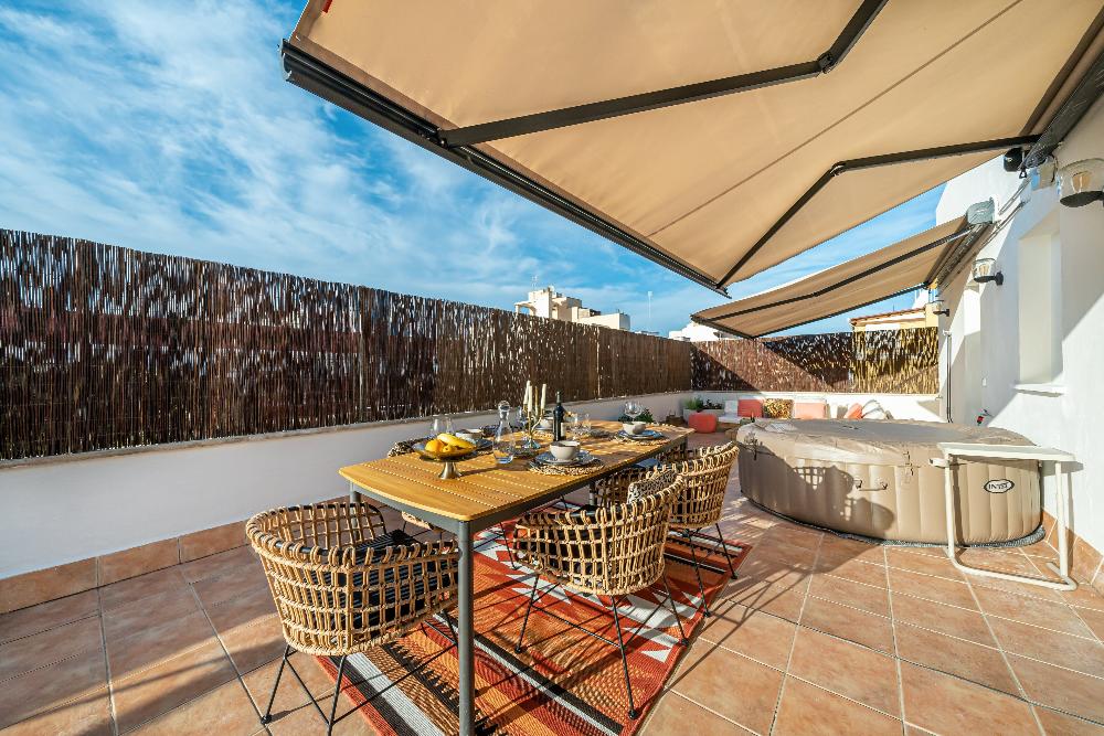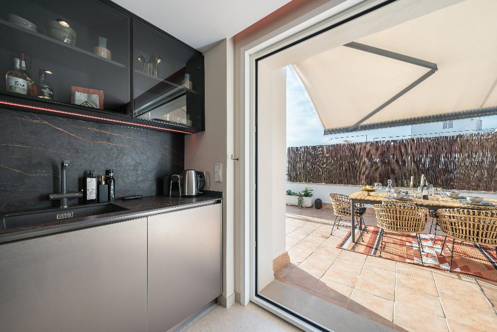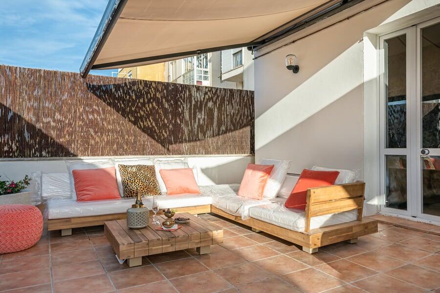 Luxuriöses Penthouse mit Panoramablick in Santa Catalina-Verfügbar von Mitte April bis Ende September. Entdecken Sie dieses beeindruckend renovierte Penthouse im Herzen von Palma, das atemberaubende Ausblicke auf den Palma Tennis Club bietet. Dieses exklusive Stadtreträt wurde einer kompletten hochwertigen Renovierung unterzogen und kombiniert moderne Eleganz mit Komfort für den ultimativen urbanen Lebensstil. Das Penthouse verfügt über 75 qm stilvollen Innenraum, einschließlich einer offenen Küche, einem Essbereich und einem Wohnzimmer, das um einen doppelseitigen Gaskamin herum angeordnet ist. Die Wohnung bietet zwei gut ausgestattete Schlafzimmer und ein luxuriöses Badezimmer, das mit hochwertigen Materialien gestaltet wurde. Ein herausragendes Merkmal ist die großzügige 75 qm große private Terrasse, die nahtlos mit der Küche verbunden ist und ein außergewöhnliches Innen-Außen-Lebensgefühl bietet. Dieser sonnenverwöhnte Raum eignet sich perfekt für Al Fresco-Dining, Entspannung und Unterhaltung und bietet zudem ausreichend Stauraum. In einer erstklassigen Lage in Palma gelegen, bietet dieses Penthouse schnellen und bequemen Zugang zu erstklassigen Restaurants, Premium-Shopping, internationalen Schulen, medizinischen Dienstleistungen und Weltklasse-Sporteinrichtungen. Weitere Annehmlichkeiten umfassen einen Parkplatz und die Immobilie verfügt über zentralisierte Klimaanlage, zusammen mit dem Kamin, um das ganze Jahr über die perfekte Temperatur zu gewährleisten. Erleben Sie luxuriöses Wohnen in einer der begehrtesten Lagen Palmas.