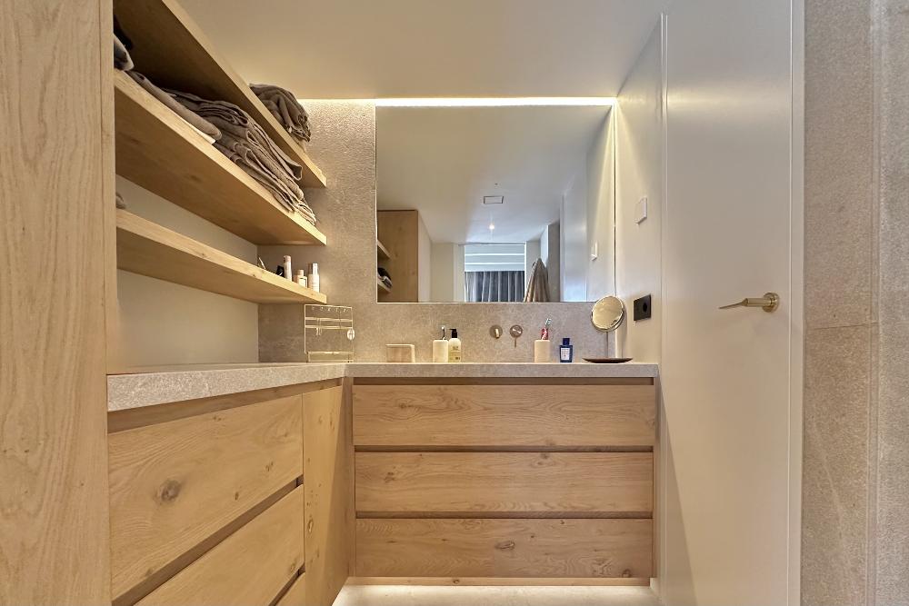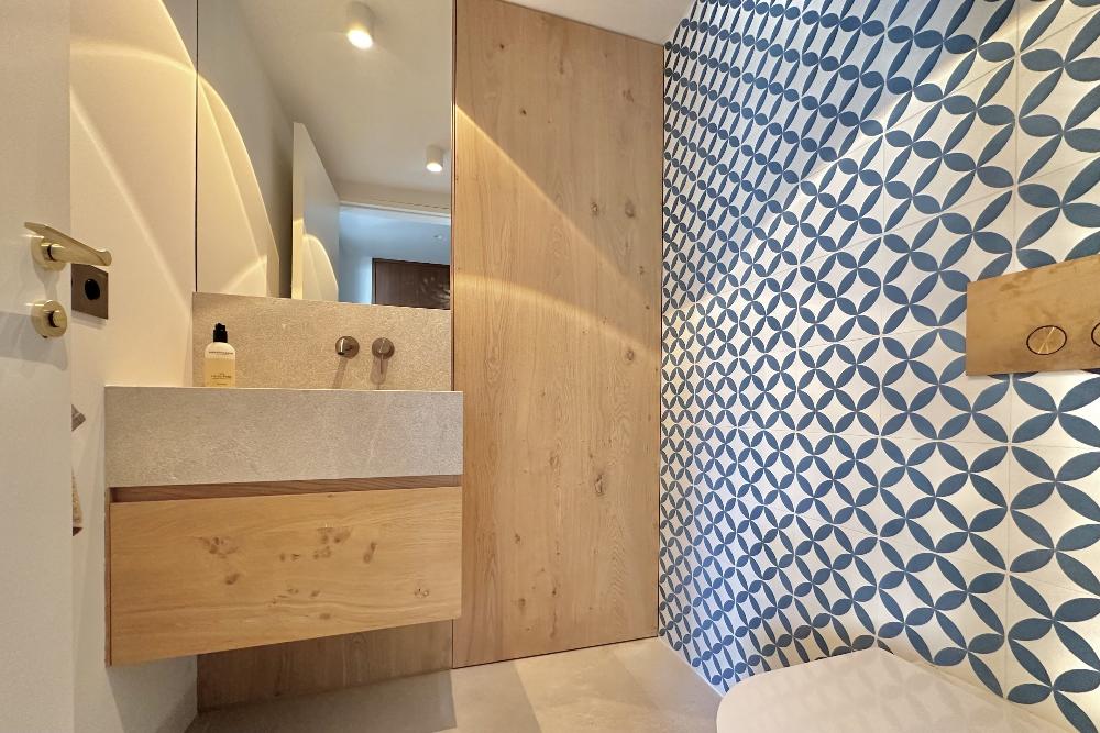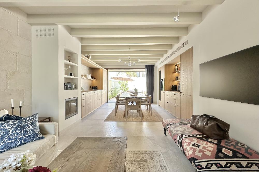 Neu renoviertes, hochwertiges Stadthaus in bester Lage von Molinar, nur 1 Gehminute vom Meer entfernt. Mit 110 m² Wohnfläche, einer privaten Terrasse von 40 m² und einer 50 m² großen Dachterrasse mit atemberaubendem Meerblick ist dieses Haus auf Komfort und Stil ausgerichtet. Im Erdgeschoss befinden sich ein helles Wohnzimmer, eine moderne Küche, eine großzügige Terrasse und ein Gäste-WC; im ersten Stock gibt es 3 Schlafzimmer und 2 Badezimmer, eines davon en suite; die Dachterrasse bietet reichlich Platz zum Entspannen oder Unterhalten. Voll möbliert mit hochwertigen Ausstattungen, einschließlich Gaggenau-Küchengeräten, Fußbodenheizung, Klimaanlage (warm/kalt) und Highspeed-Internet. Eine seltene Gelegenheit, luxuriöses Wohnen in einer Top-Lage von Molinar zu genießen.