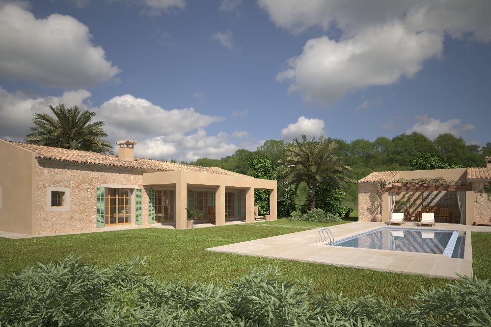 Mallorquinische Finca mit Pool in Porreres-Auf einem über 14.200 m² großen Privatgrundstück erwartet Sie dieses neu konzipierte Einfamilienhaus, eine perfekte Verbindung aus traditioneller mallorquinischer Architektur und modernem Wohnkomfort. Das Erdgeschoss überzeugt mit einem offenen Wohn-, Ess- und Küchenbereich sowie drei Schlafzimmern und drei stilvollen Bädern. Eine Garage, Waschküche und Speisekammer bieten zusätzliche Funktionalität. Besonders beeindruckend ist der Außenbereich: Großzügige Terrassen und Veranden erweitern den Wohnraum ins Freie, während der elegante Pool mit 35-m²-Spiegelfläche pure Entspannung bietet. Ein separates Nebengebäude mit Außenküche und Pergola.