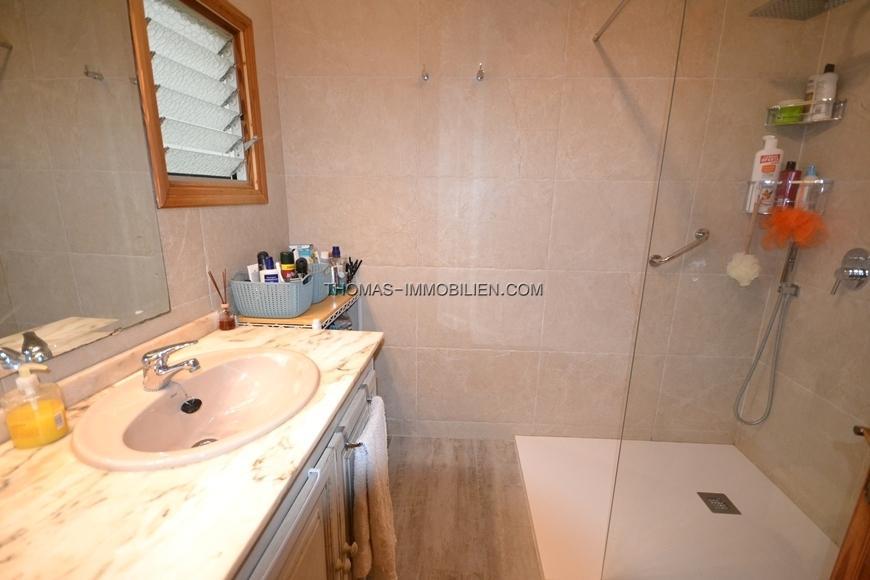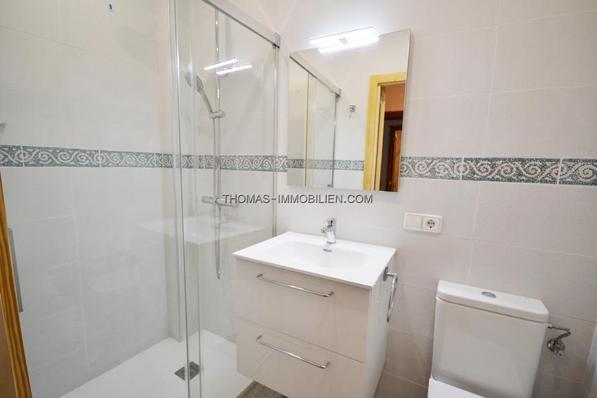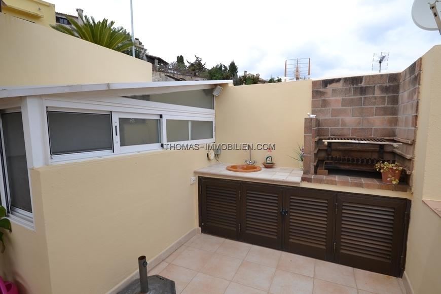 Bestehend aus 3 Doppelschlafzimmern, 2 Bädern (1 ensuite), Wohn-Esszimmer mit offener Küche, Hauswirtschaftsraum und mehreren Terrassen, eine davon mit Grill.