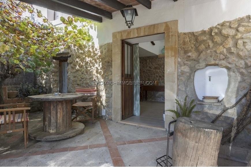 Das Innere der Immobilie besteht aus drei Doppelschlafzimmern, von denen sich zwei im Obergeschoss und eines im Erdgeschoss mit Bad befinden, sowie drei Badezimmern, zwei im Erdgeschoss und eines im Obergeschoss. Die Küche ist geräumig und kombiniert moderne Designelemente mit traditionellen mallorquinischen Elementen, ein Wohnzimmer mit Kamin, ein Innenhof und eine Terrasse.