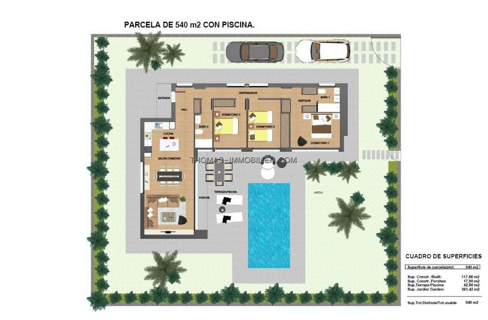 MODERNE VILLEN IN CALASPARRA MIT PRIVATEM POOL !!! Neues Immobilienprojekt bestehend aus 215 unabhängigen Villen in Calasparra. Es werden 170 Villen auf Grundstücken von 545 m² und 45 Villen auf Grundstücken von 1.250 m² gebaut. Häuser mit 2 und 3 Schlafzimmern mit einem privaten Pool von 24,5 m2 inklusive, modernen Oberflächen und maximalen Qualitäten: Mattschwarze Aluminiumfenster, motorisierte Jalousien, gepanzerte Eingangstür zum Haus, weiß lackierte Innentüren, aerothermisches System zur Warmwasserbereitung, Quarz (Silestone)-Arbeitsplatte in der Küche, Elektrogeräte inklusive, Vorinstallation der Klimaanlage durch Kanäle.