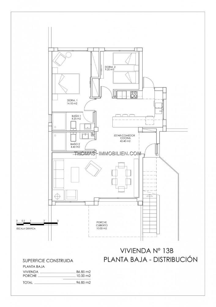Schöne Bungalows können Sie zwischen 2 und 3 Schlafzimmern, im Obergeschoss mit einem Solarium oder im Erdgeschoss mit einem Garten, auch ein Keller Option, wenn Sie zusätzlichen Platz benötigen.