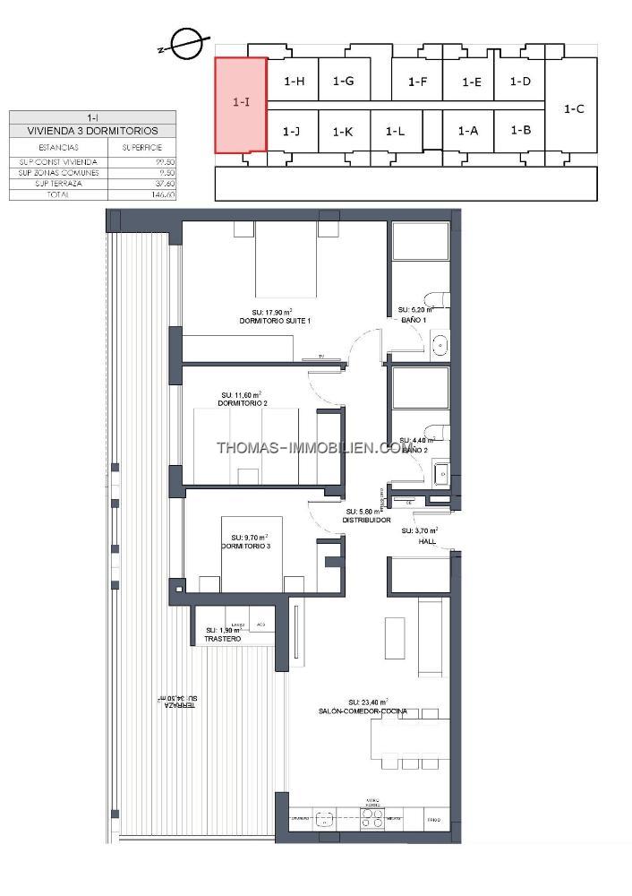 Moderne Neubauwohnungen mit offener Küche und Wohnzimmer, 2 und 3 Schlafzimmer, 2 Bäder, Terrassen.