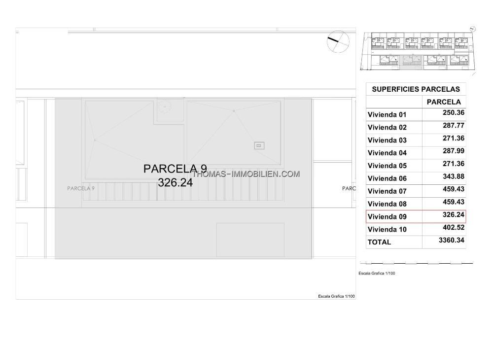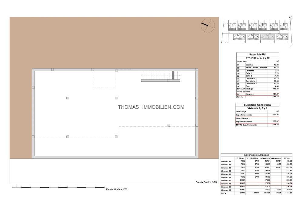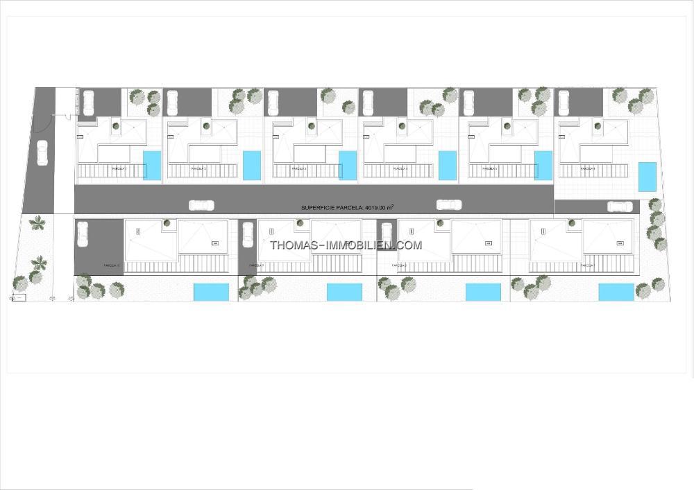 Das Projekt wird in zwei Bauphasen unterteilt, die wiederum zwei Arten von Häusern umfassen, mit 1 oder 2 Etagen, 3 Doppelschlafzimmern, 2 oder 3 kompletten Badezimmern, Wohn-Esszimmer mit integrierter Küche, Waschküche, großer Terrasse und Garten, privatem Pool, Außenparkplatz, 1 oder 2 Mehrzweckkellern und in einigen Modellen geschlossener Tiefgarage.