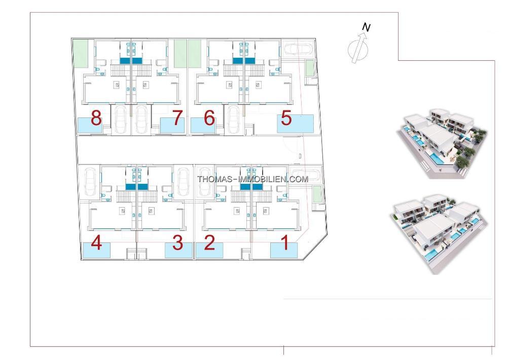 Diese moderne Wohnanlage in Dolores bietet neu gebaute Doppelhaushälften. Jedes Haus wurde mit Blick auf zeitgenössischen Stil und Komfort entworfen. Es erstreckt sich über zwei Etagen und bietet 3 Schlafzimmer und 3 Badezimmer. Die offene Küche geht nahtlos in das Wohnzimmer über, das direkt auf eine private Terrasse und einen Garten führt. Zu jeder Wohnung gehören außerdem ein eigener Pool und ein Parkplatz.
