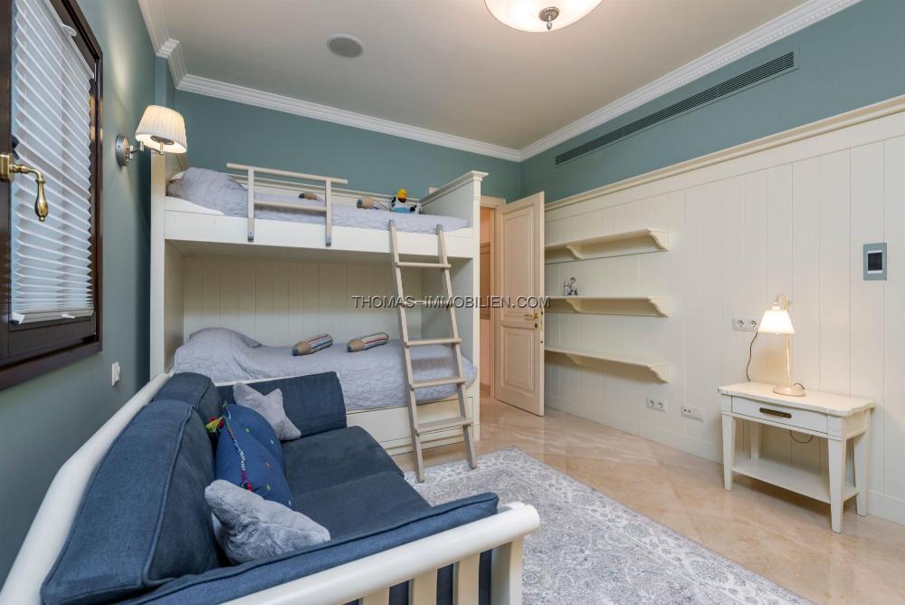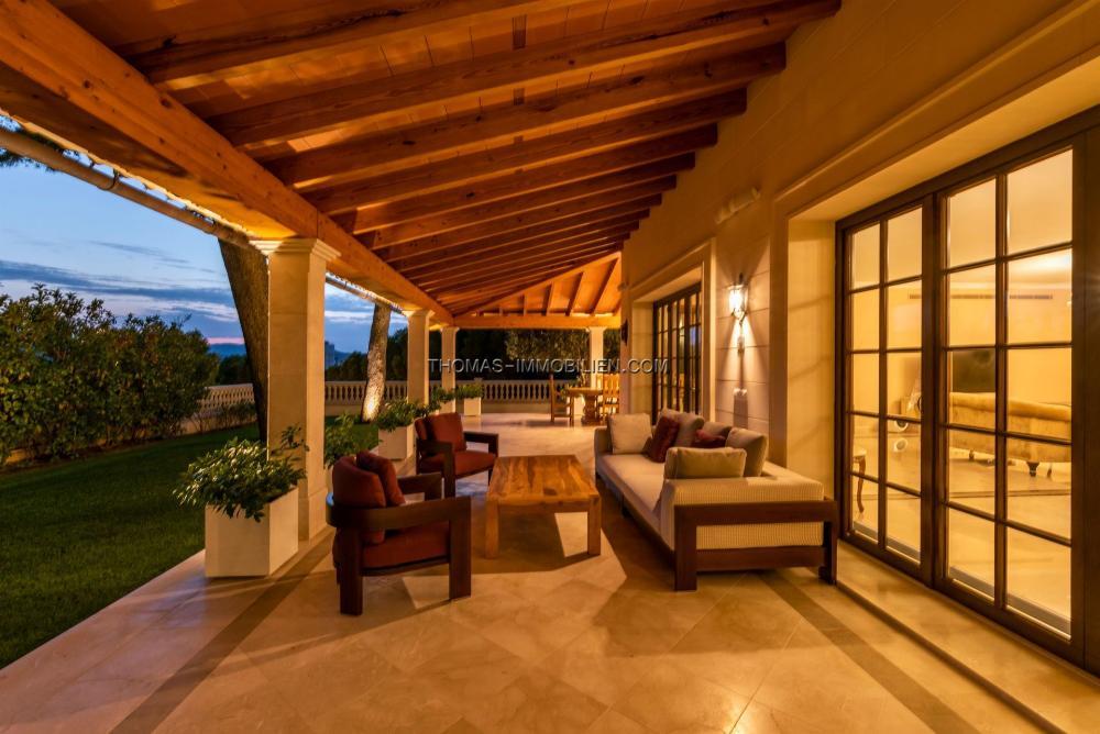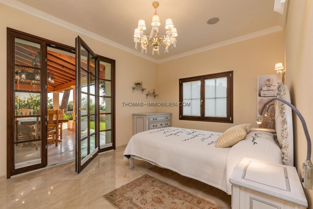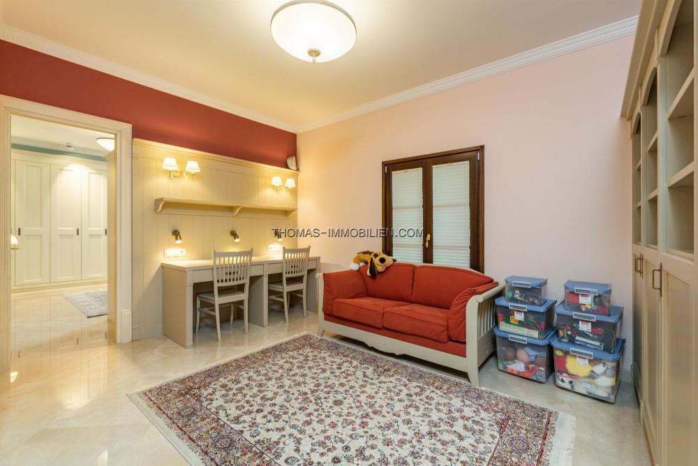 Im Untergeschoss gibt es eine Garage für 3 Autos und eine Sauna für 4 Personen. Im Erdgeschoss gibt es ein Wohnzimmer, ein separates Esszimmer, ein weiteres Wohnzimmer mit Kamin, eine Küche, eine Waschküche, eine Frühstücksterrasse, eine große überdachte Terrasse mit frischer Meeresbrise, 2 Schlafzimmer mit Badezimmern und ein Gästehaus Toilette. Auf der ersten Etage befinden sich 4 Schlafzimmer mit Bädern, ein Spielzimmer und 3 weitere Terrassen mit weitem Blick auf das Meer und die Sierra de Tramuntana.