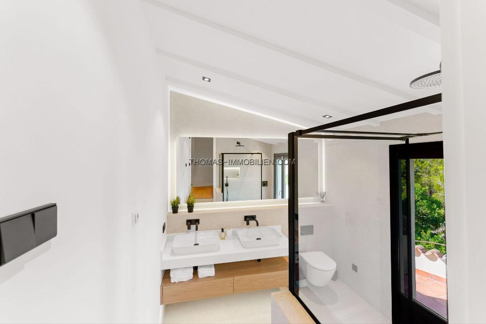 Das Haus verfügt über 4 luxuriöse Schlafzimmer, jedes mit eigenem Bad, das Komfort und Privatsphäre bietet. Das Hauptschlafzimmer, verborgen in einem faszinierenden runden mallorquinischen Turm, dient als beeindruckender Blickfang und verströmt einen bezaubernden Reiz. Jeder Aspekt dieser Immobilie wurde mit größter Liebe zum Detail sorgfältig gestaltet und nur die feinsten Materialien verwendet, um eine Atmosphäre von Raffinesse und Eleganz zu schaffen, die das Wohnen zu außergewöhnlichen Höhen erhebt.