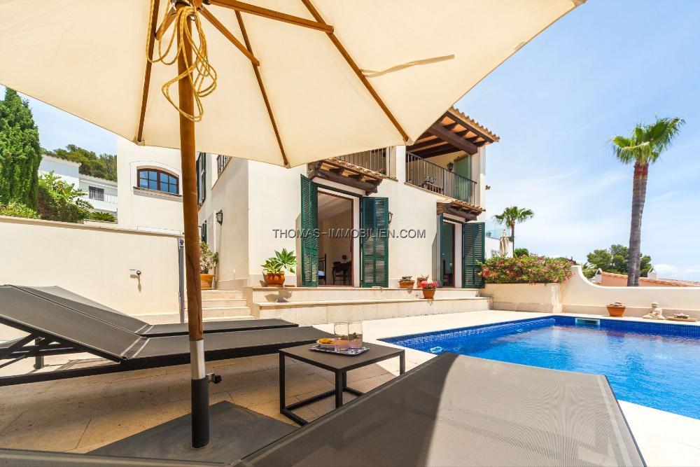Das in der exklusiven Gemeinschaft "Voramar" gelegene 3-Zimmer-Reihenhaus auf einem der höchsten Punkte von Costa den Blanes mit eigenem Pool und schöner Aussicht auf das Meer steht zum Verkauf. Klassische mediterrane Architektur mit warmem Charakter, einladende überdachte und offene Terrassen, hohe Decken mit Holzbalken, Innenräume voller Luft und Licht. Sonnige Südausrichtung. Garage. Der perfekte Ort, um das Klima von Mallorca und den mediterranen Lebensstil zu genießen. Eine kurze Fahrt bringt Sie zum angesagten Puerto Portals. Und in wenigen Minuten erreichen Sie die Stadt Palma. Das Haus besteht aus 3 Schlafzimmern, 2 Badezimmern, einem Gäste-WC, einem großen Wohnzimmer und der Küche. Schönes Anwesen auf dem Markt. Fragen Sie uns nach weiteren Details und Besichtigungen!