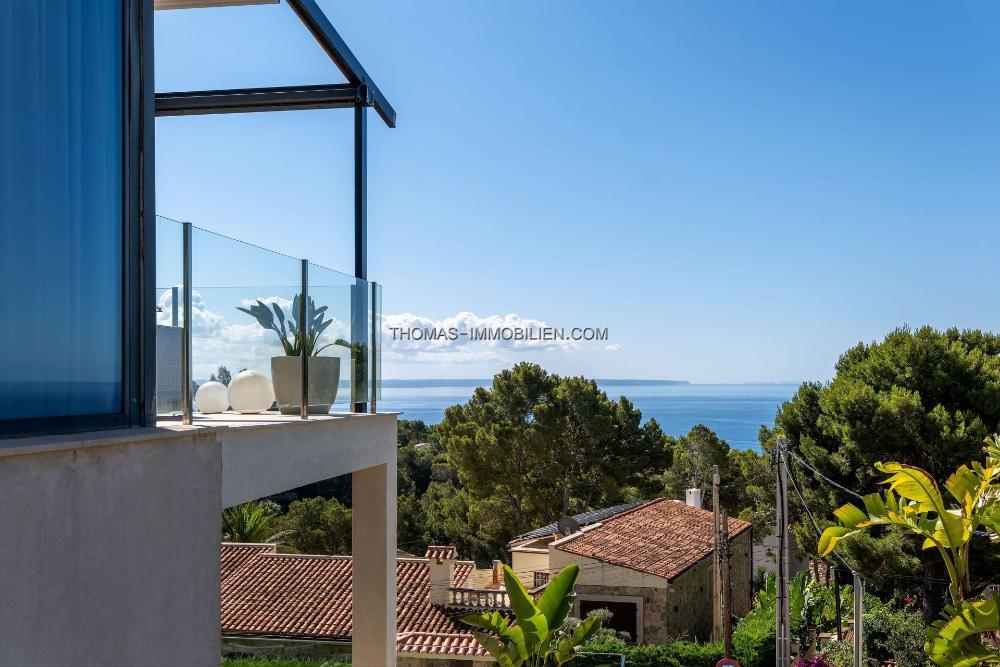 Nach Süden ausgerichteten Villa in der Wohngegend von Costa d'en Blanes, bekannt für ihre 24-Stunden-Sicherheit und atemberaubenden Meerblick. Auf einem weitläufigen Grundstück von 819 m² gelegen, verfügt diese Immobilie über eine bebaute Fläche von 354 m².