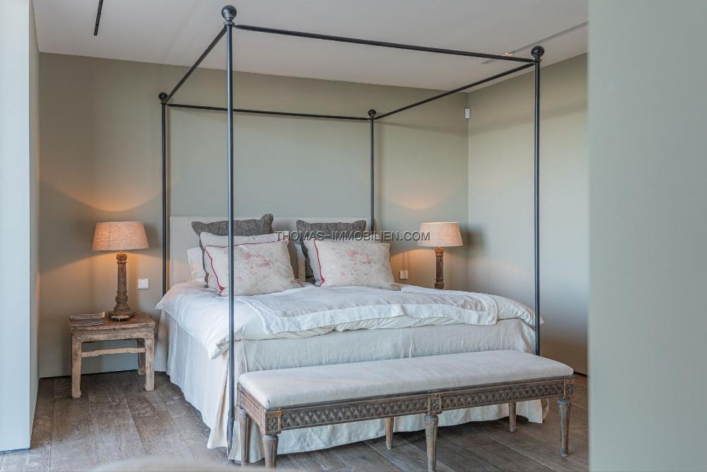 Im ersten Stock befinden sich vier Schlafzimmer: ein geräumiges Hauptschlafzimmer mit eigenem Bad, zwei Gästezimmer, die sich ein Bad teilen, und ein viertes Schlafzimmer mit eigenem Bad.