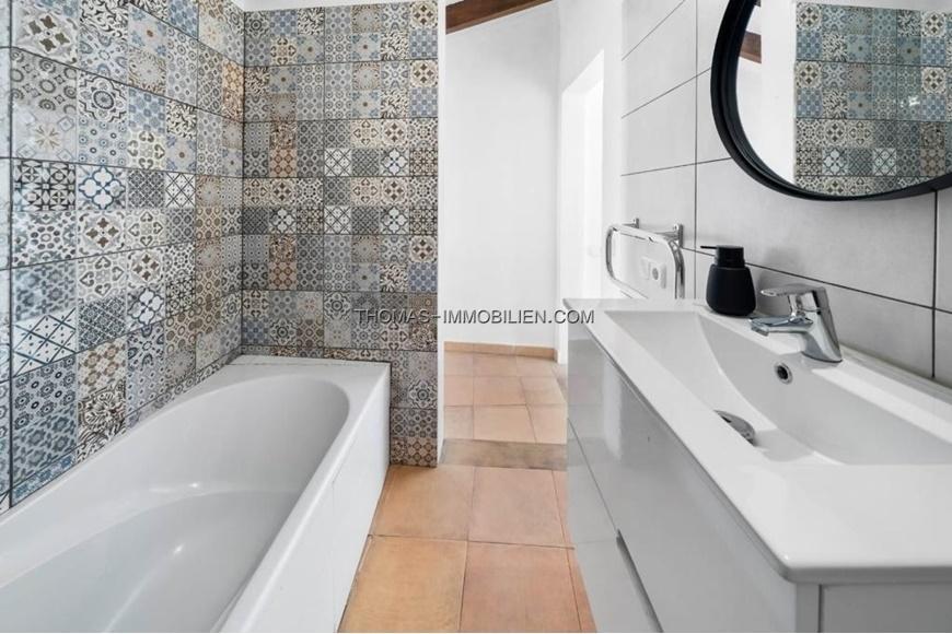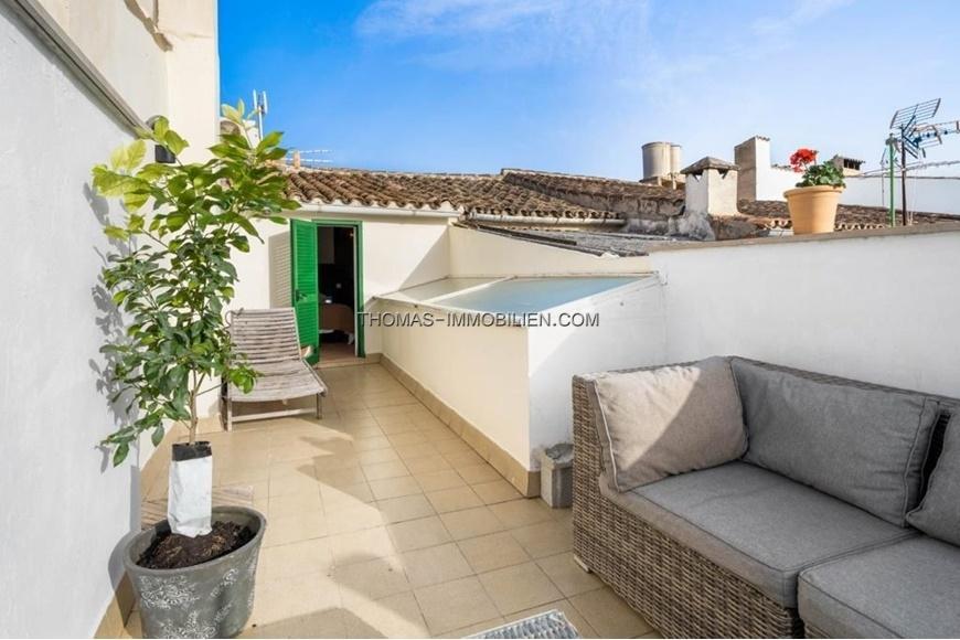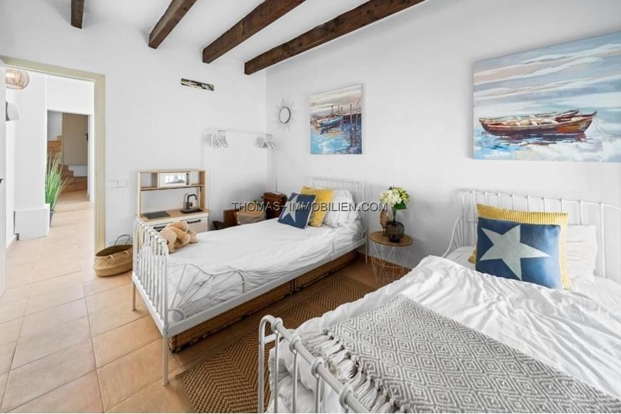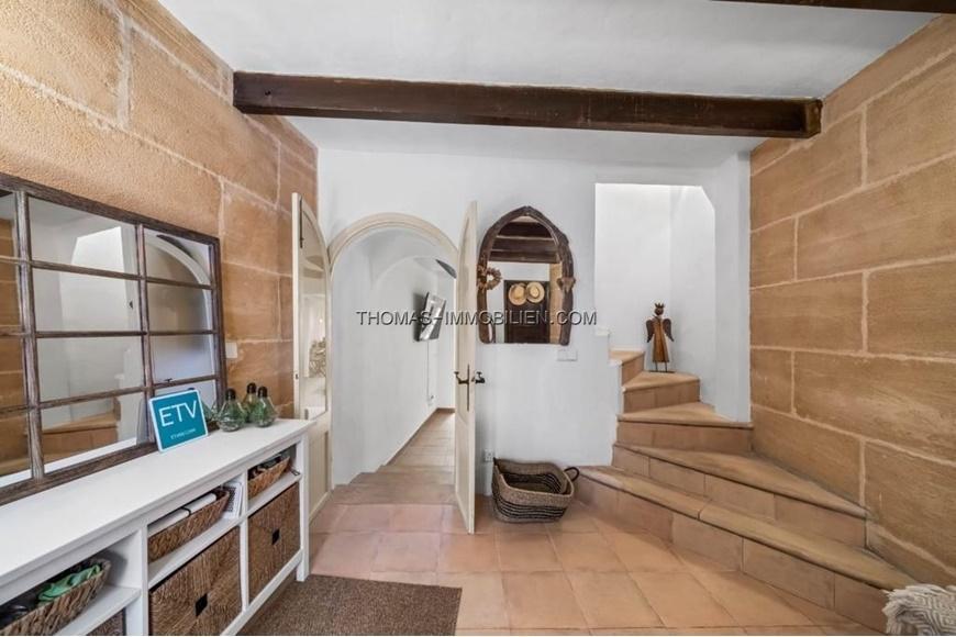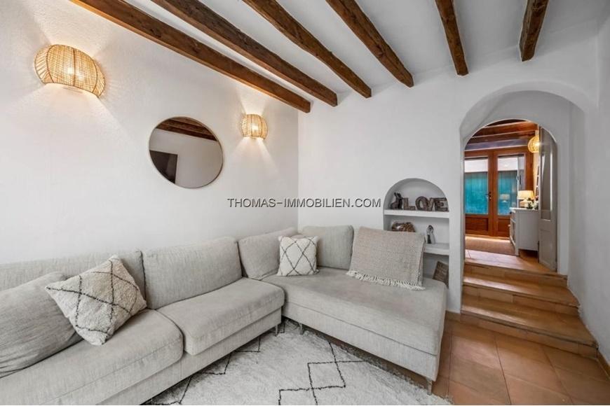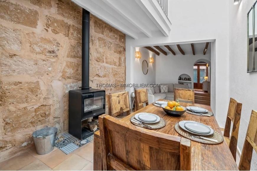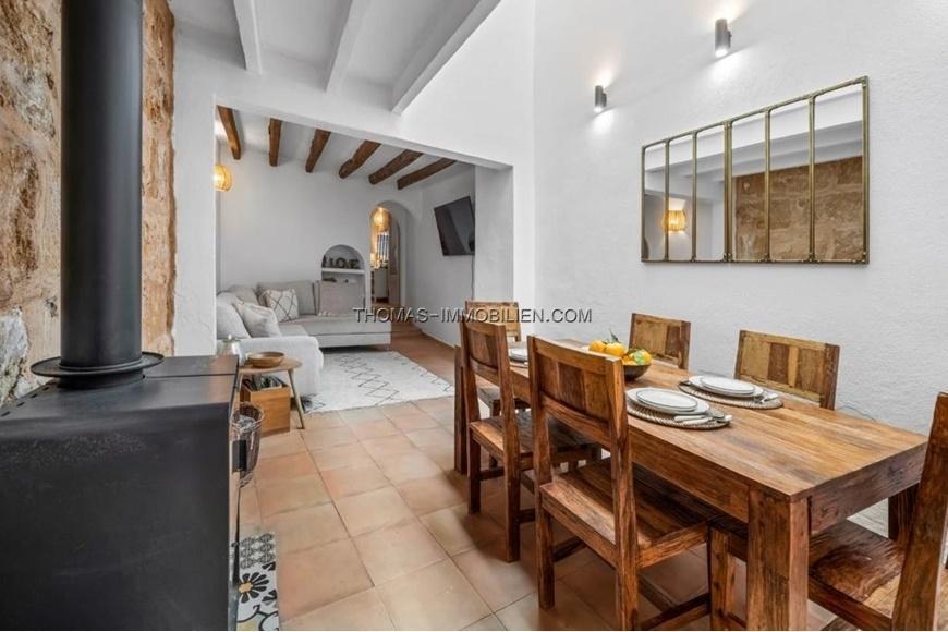 Schöne Doppelhaushälfte mit privater Terrasse und Ferienvermietungslizenz nur wenige Minuten vom Zentrum von Pollensa entfernt. Das Haus hat 154 m2 auf drei Ebenen und verteilt sich auf drei Doppelzimmer, zwei komplette Badezimmer (eines davon en suite), ein geräumiges Wohn-Esszimmer mit Kamin, eine voll ausgestattete Küche und eine große Terrasse auf der obersten Etage mit Zugang vom Hauptschlafzimmer. Das Erdgeschoss besteht aus einer sehr einladenden Eingangshalle, die zu einem großen offenen Raum mit einem Wohn-Esszimmer und einer offenen Einbauküche führt. In der ersten Etage befinden sich zwei Doppelschlafzimmer, die sich ein Badezimmer mit Dusche teilen. Im Obergeschoss befindet sich das Hauptschlafzimmer mit eigenem Bad und einem kleinen Ankleidezimmer. Von dieser Ebene aus hat man Zugang zur privaten Terrasse mit Blick auf den Puig de Maria. Das Haus verfügt über elektrische Heizkörper in allen Räumen und eine Klimaanlage in jedem der Schlafzimmer. Im Wohn-Esszimmer befindet sich ein Holzofen, den man in den Wintermonaten genießen kann. Das Haus wurde renoviert, wobei die ursprünglichen Merkmale des Hauses und Aspekte der mallorquinischen Bauweise wie Holzbalken und Sandsteinmauern erhalten und hervorgehoben wurden. Ein weiterer großer Vorteil dieses Dorfhauses ist die 60-tägige Ferienlizenz zur Vermietung.