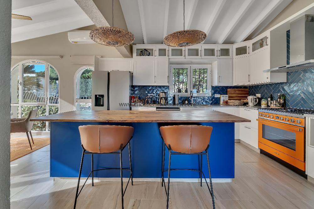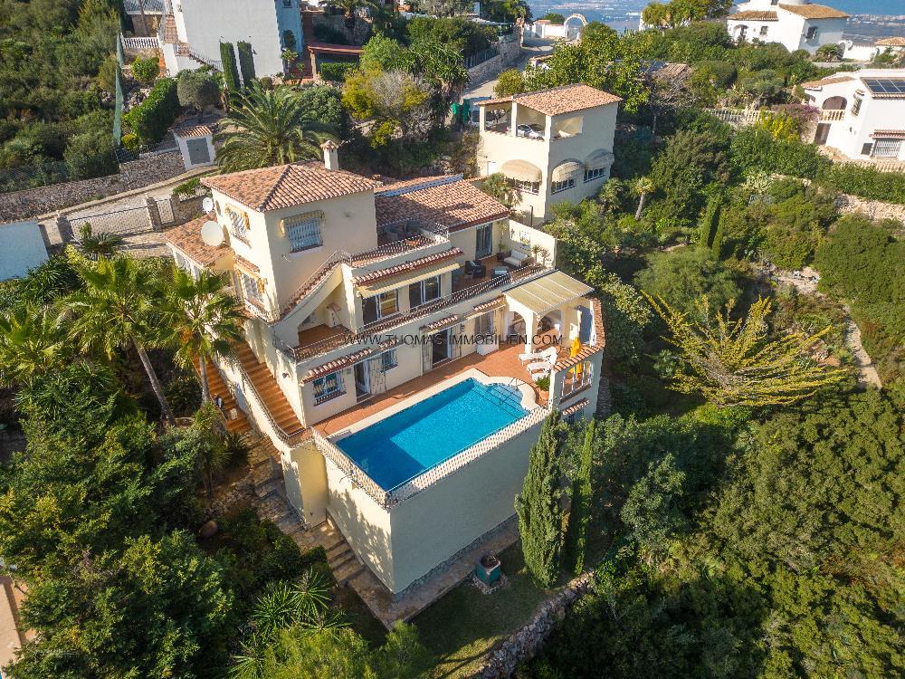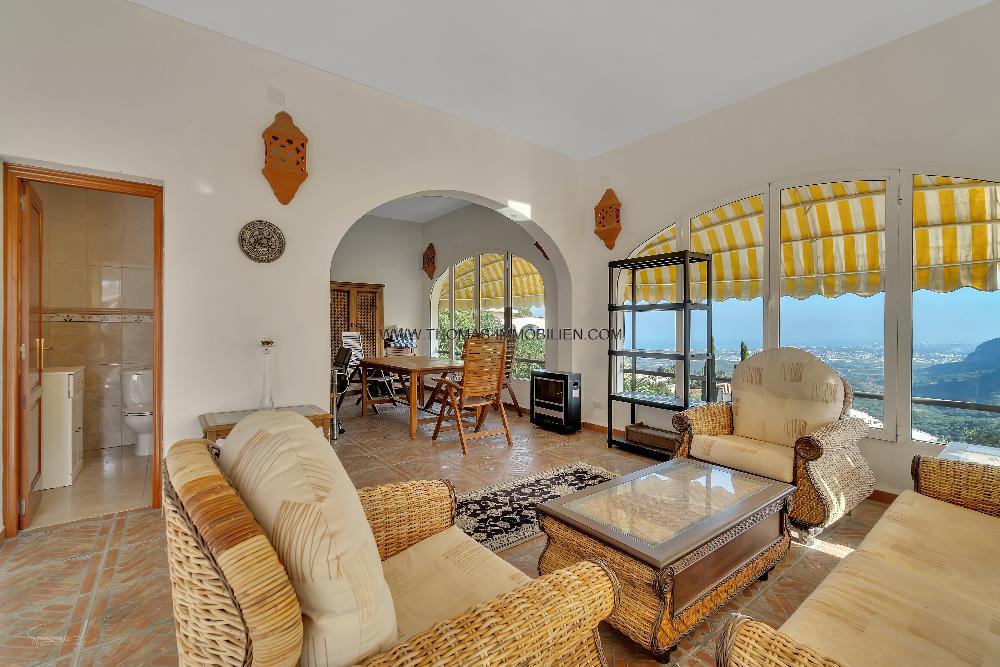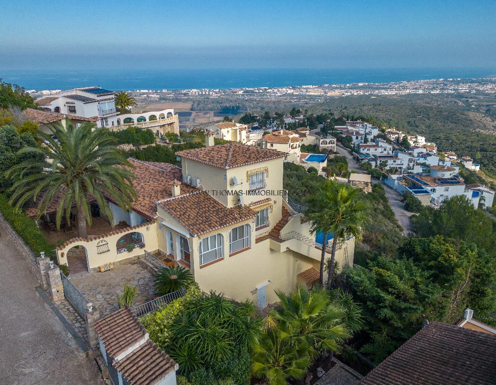 Diese großzügige und elegante Villa mit herrlichem freien Blick auf das Mittelmeer und den Naturpark Sagaria befindet sich in einer der beliebtesten Urbanisationen der Costa Blanca – am Monte Pego. Das Anwesen befindet sich auf einem Doppelgrundstück und hat eine Süd-West-Ausrichtung und liegt in einer Sackgasse, somit ist Ruhe garantiert. Das Anwesen ist in ausgezeichnetem Zustand und ist auf 3 Etagen verteilt. Die Aufteilung dieses geräumigen Anwesens ermöglicht es Ihnen ein Haus zu genießen, welches sowohl eine private Hauptebene für Sie bietet, als auch 2 separate Bereich für Ihre Familie und Ihre Freunde. Das innere dieser charmanten Villa, mit Ihrem einzigartigen Design wurde mit großer Sorgfalt und Ergonomie gestaltet - jeder Raum wird genutzt, damit Sie den mediterranen Lebensstil jeden Tag genießen können. Im Erdgeschoss betreten Sie eine geräumige Eingangshalle mit einer Garderobe mit viel Stauraum. Von hier aus betritt man den lichtdurchfluteten, offenen Wohn - und Esszimmer mit Kamin und spektakulären Blick auf das Mittelmeer und direktem Zugang auf eine schöne Sonnenterasse. Zusätzlich hat die Villa den Komfort eines zweiten sehr gemütlichen Fernsehzimmer / Leseraum / Ruhe Oase.