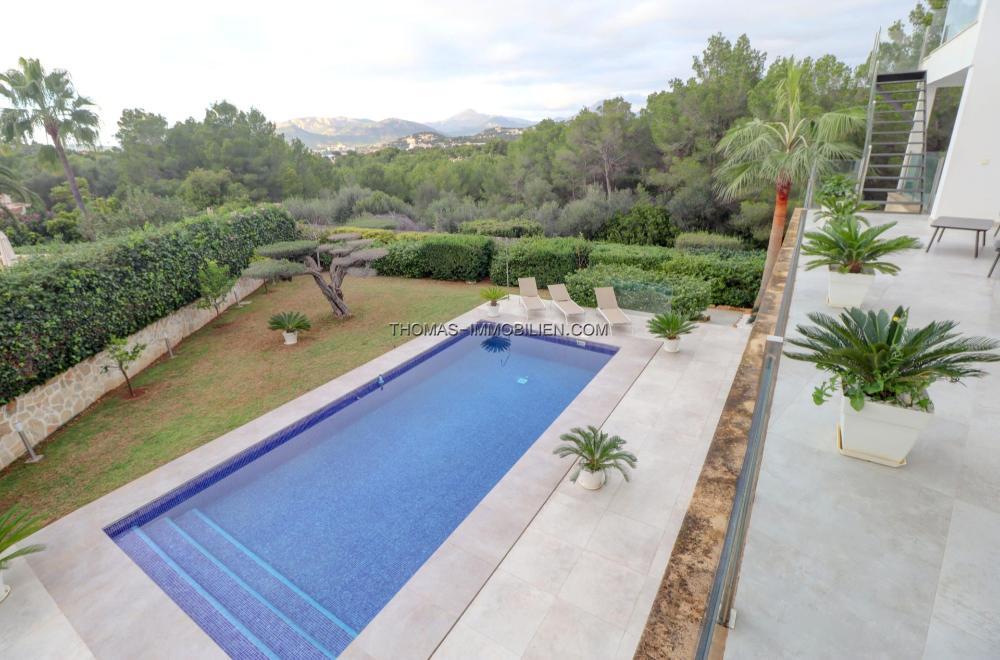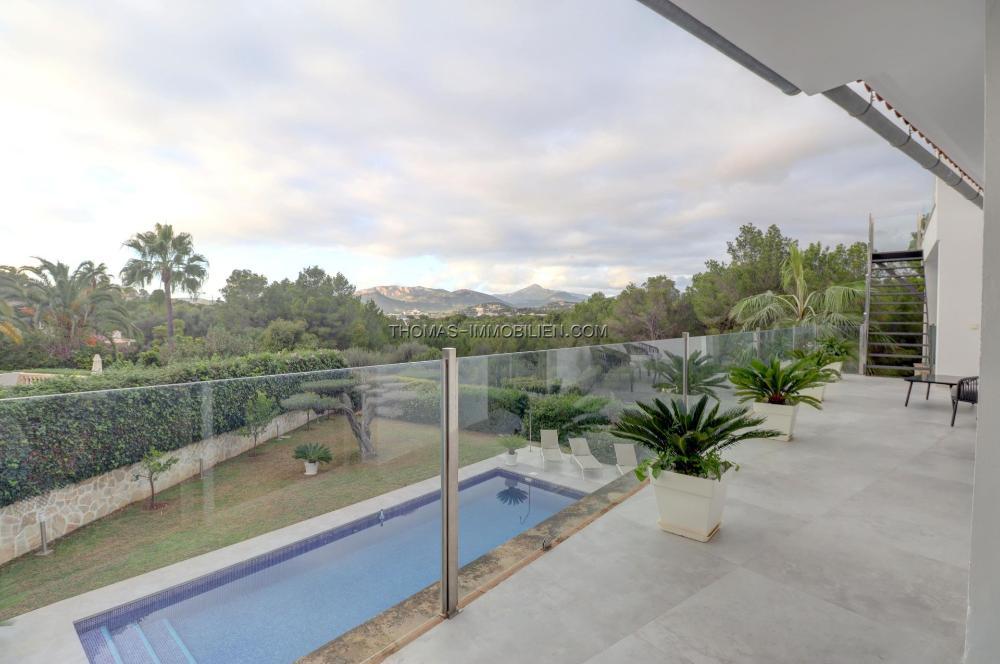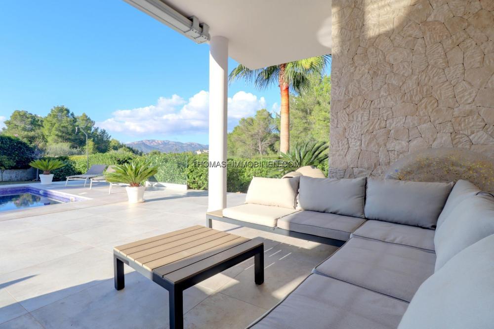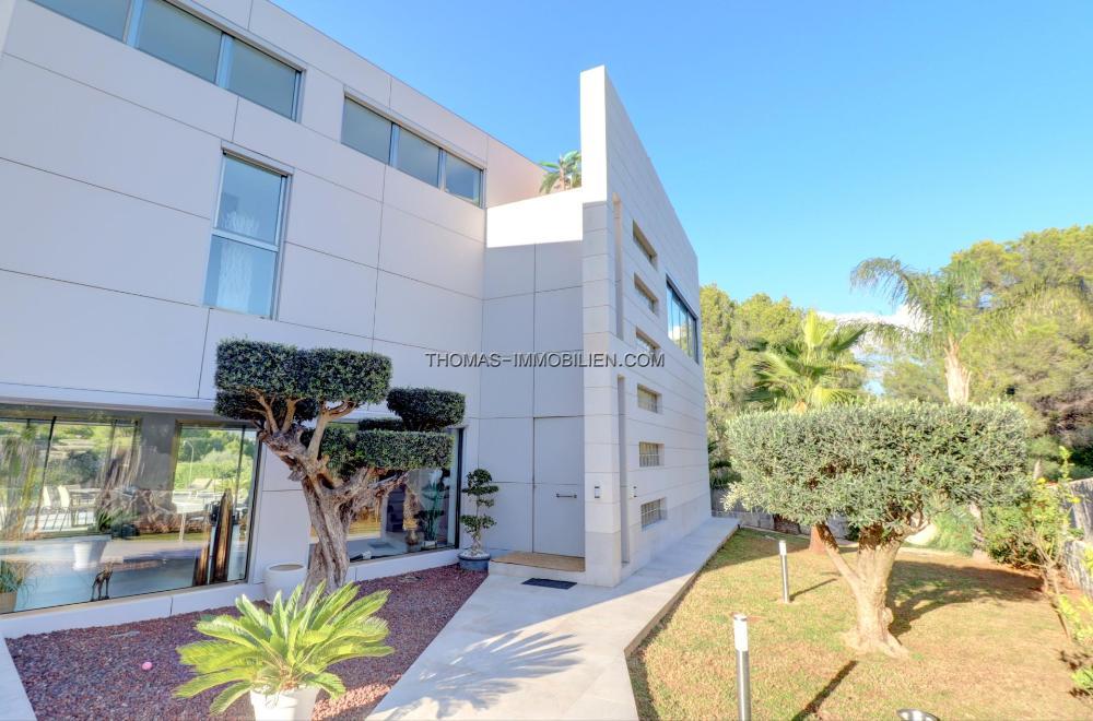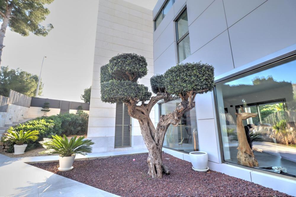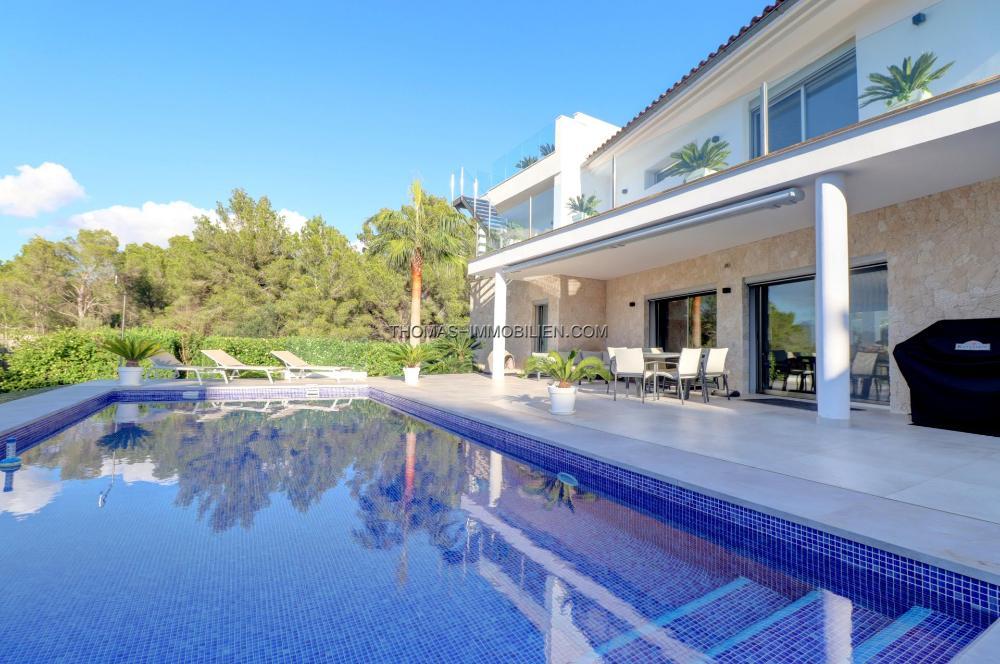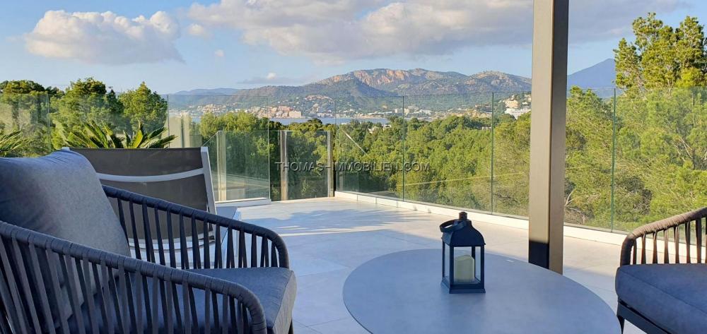 Komplett renovierte, moderne Villa mit Meerblick in Nova Santa Ponsa, direkt neben einem Grüngebiet, in ruhiger Lage und in der Nähe mehrerer Golfplätze, Tennisclubs, Strände, des luxuriösen Port Adriano und des kleinen Yachthafens von Santa Ponsa. Hochwertige Materialien und Ausstattung – Klimaanlage, elektrische Jalousien, Alarmanlage, Videokameras (alles bequem per App über Ihr Smartphone steuerbar).