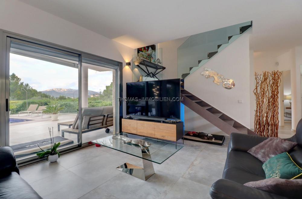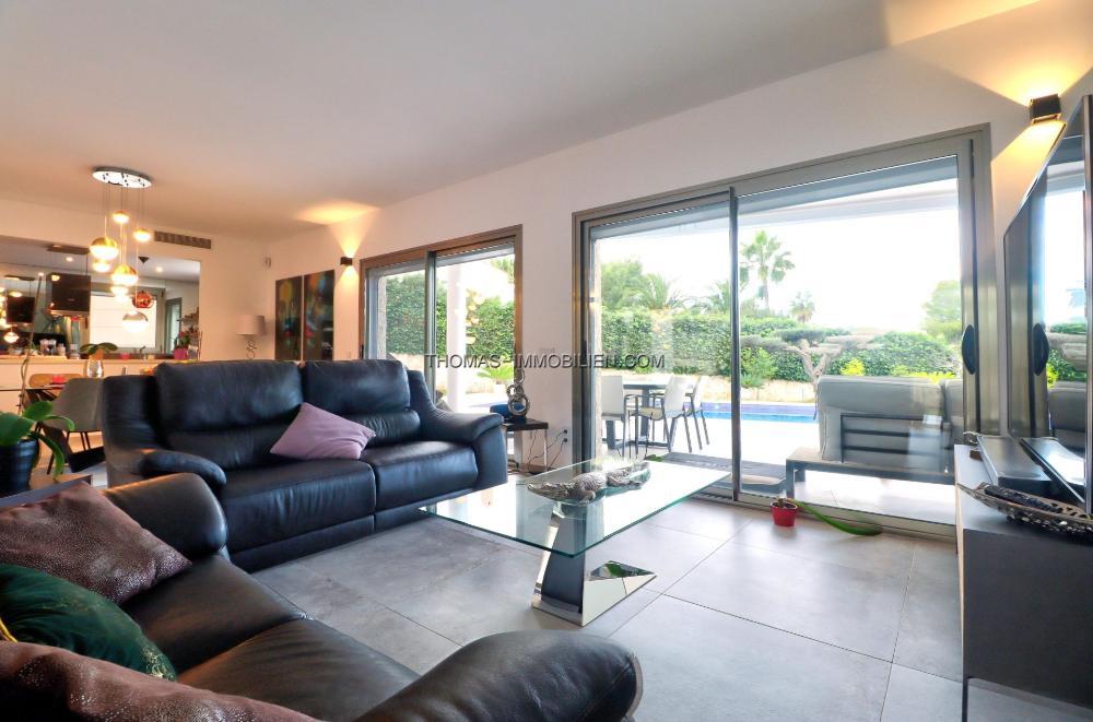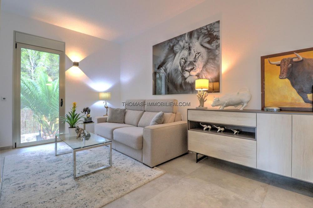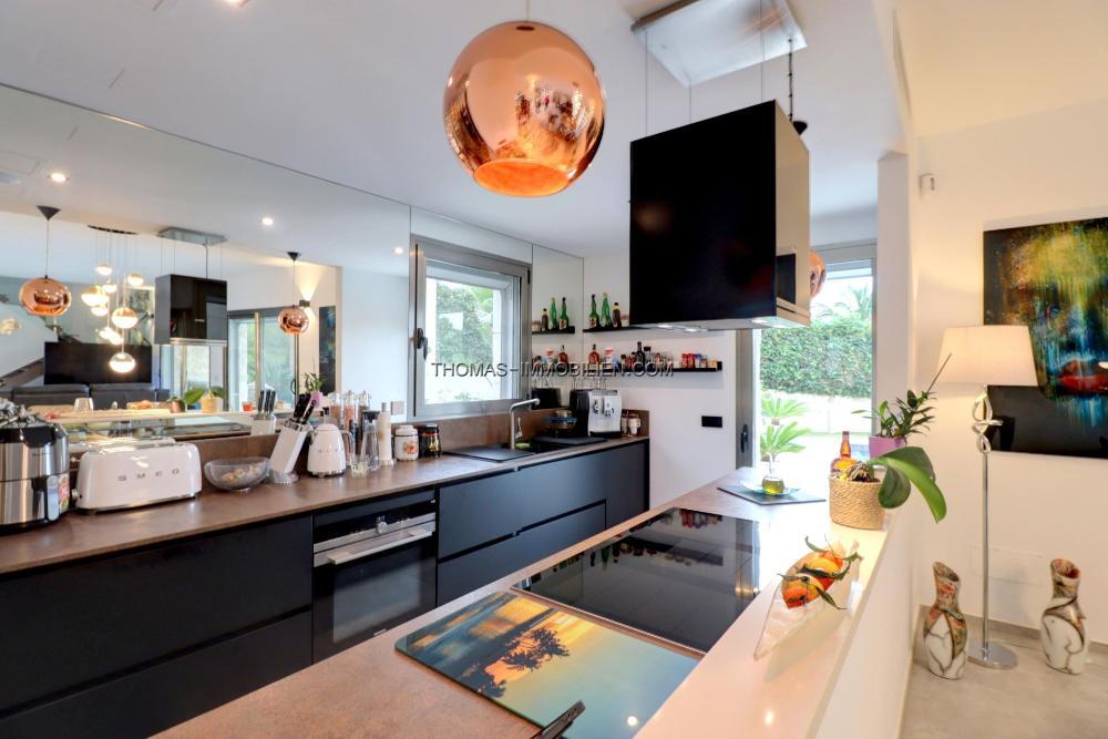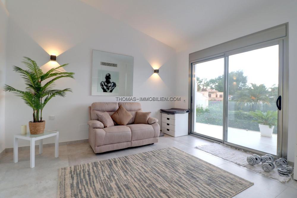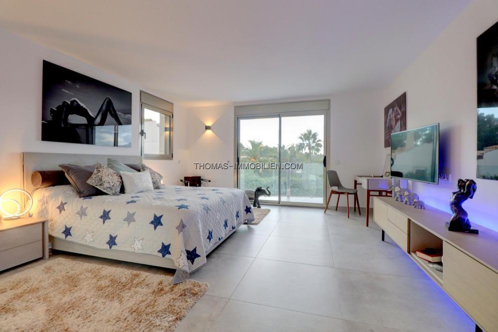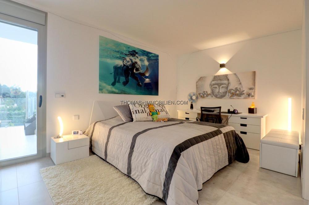 Komplett renovierte, moderne Villa mit Meerblick in Nova Santa Ponsa, direkt neben einem Grüngebiet, in ruhiger Lage und in der Nähe mehrerer Golfplätze, Tennisclubs, Strände, des luxuriösen Port Adriano und des kleinen Yachthafens von Santa Ponsa. Hochwertige Materialien und Ausstattung – Klimaanlage, elektrische Jalousien, Alarmanlage, Videokameras (alles bequem per App über Ihr Smartphone steuerbar).