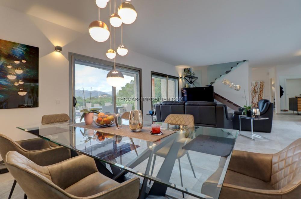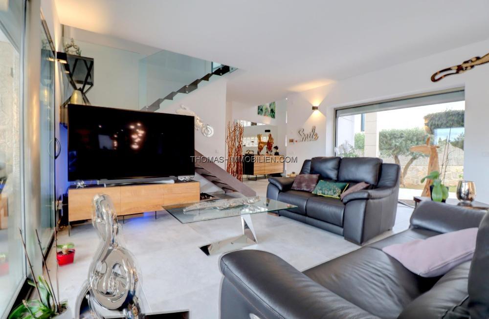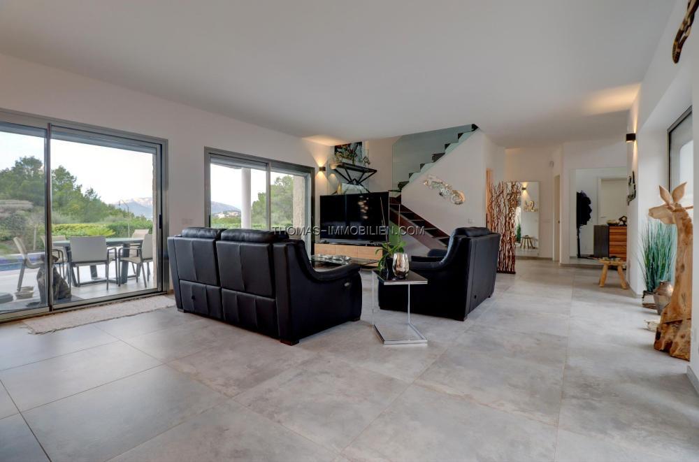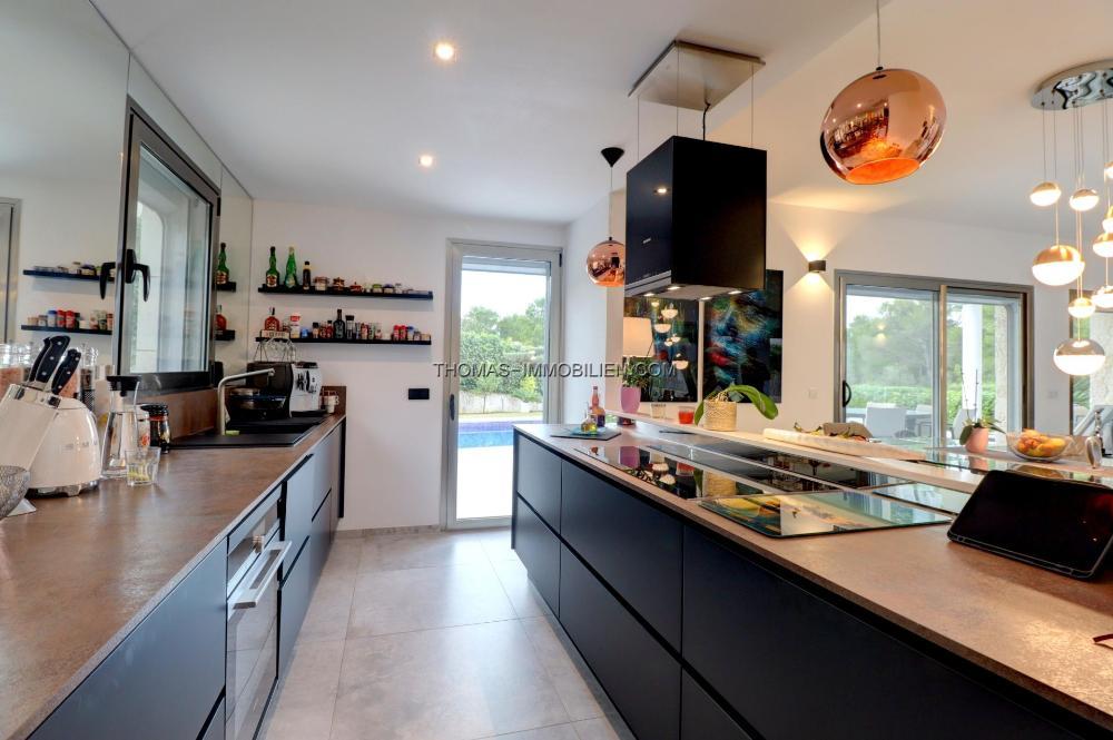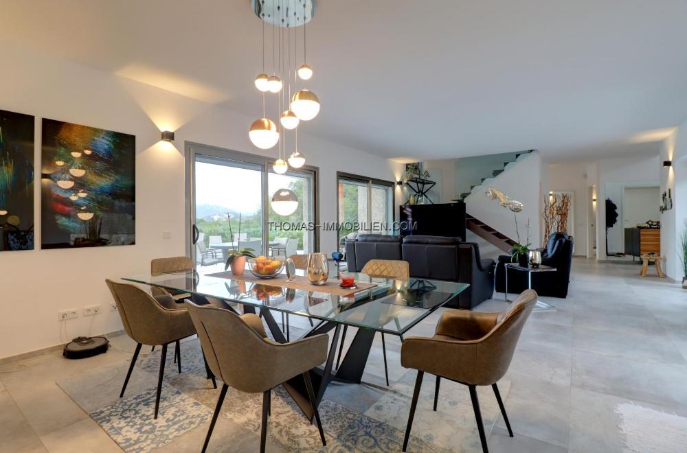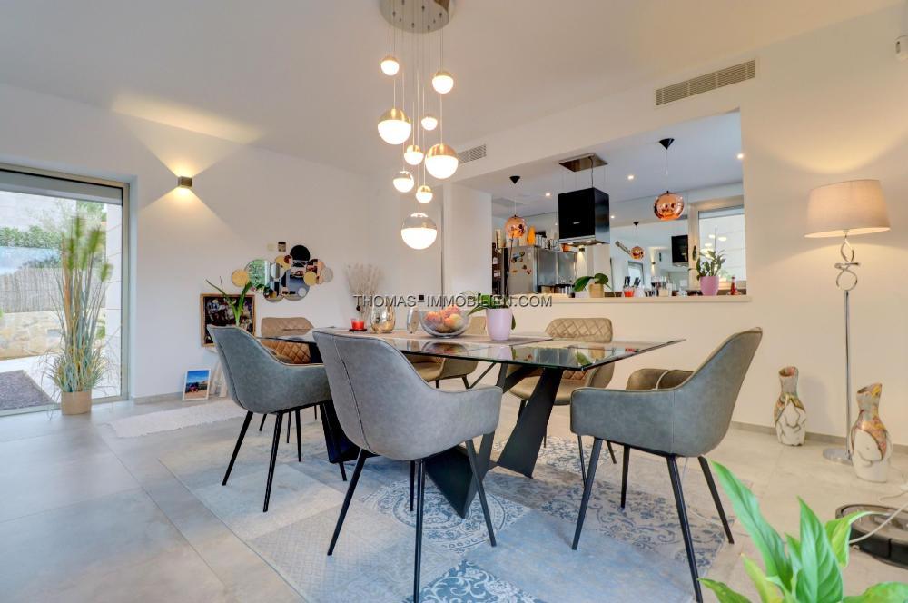 Das Haus verfügt über Fußbodenheizung (Wärmepumpe), Klimaanlage w/k, Panoramafenster mit Doppelverglasung, Einbauküche und Möbel, Garage für 1 Auto.