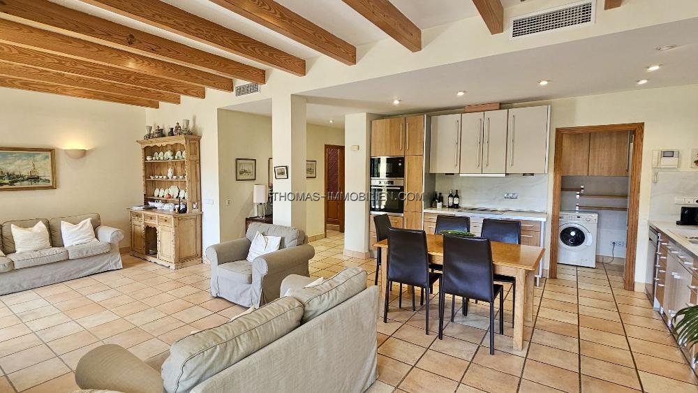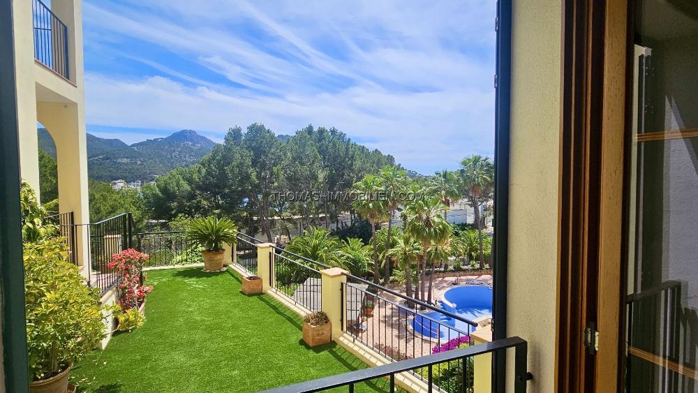 Diese außergewöhnliche Erdgeschosswohnung, gelegen im begehrten Port d'Andratx, bietet komfortables und bequemes Wohnen ohne Treppen, was sie zugänglich und leicht begehbar macht. Mit großzügigen 190 m² bebauter Fläche ist diese Residenz sowohl für Entspannung als auch für Unterhaltung konzipiert.