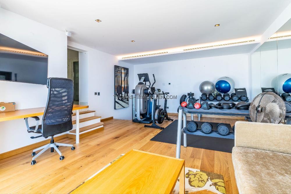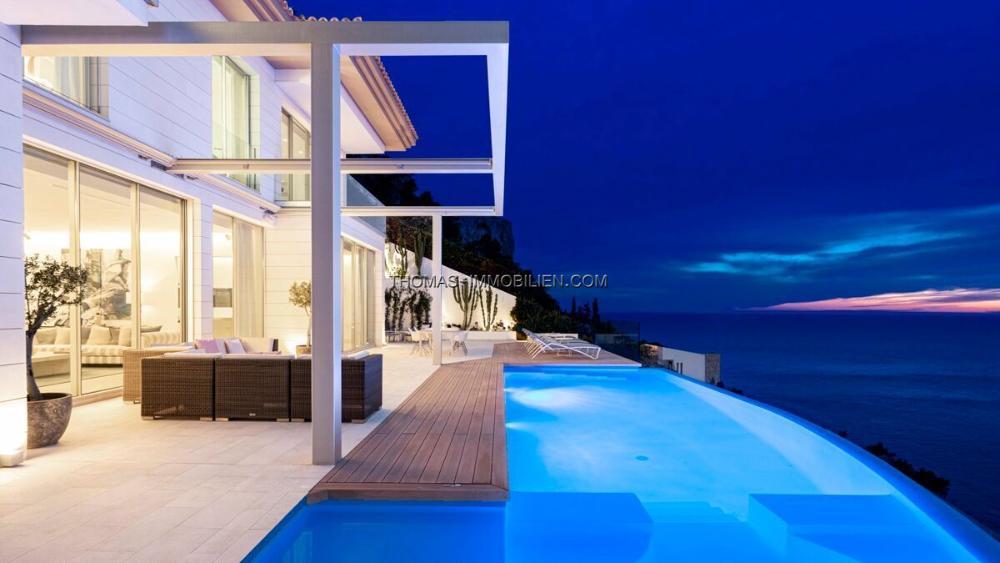 Die Residenz bietet Meerblick und verfügt über einen privaten Außenpool. Ein Aufzug ermöglicht den Zugang zwischen den Etagen. Neben dem Haupteingang befindet sich eine große Doppelgarage und mehrere Abstellräume.