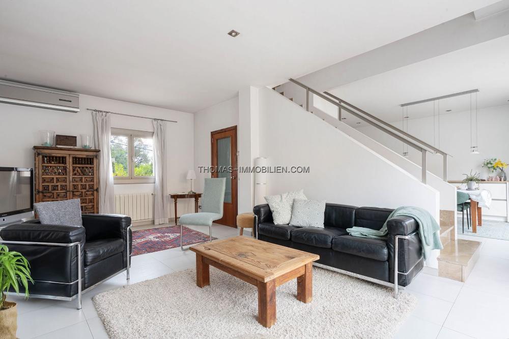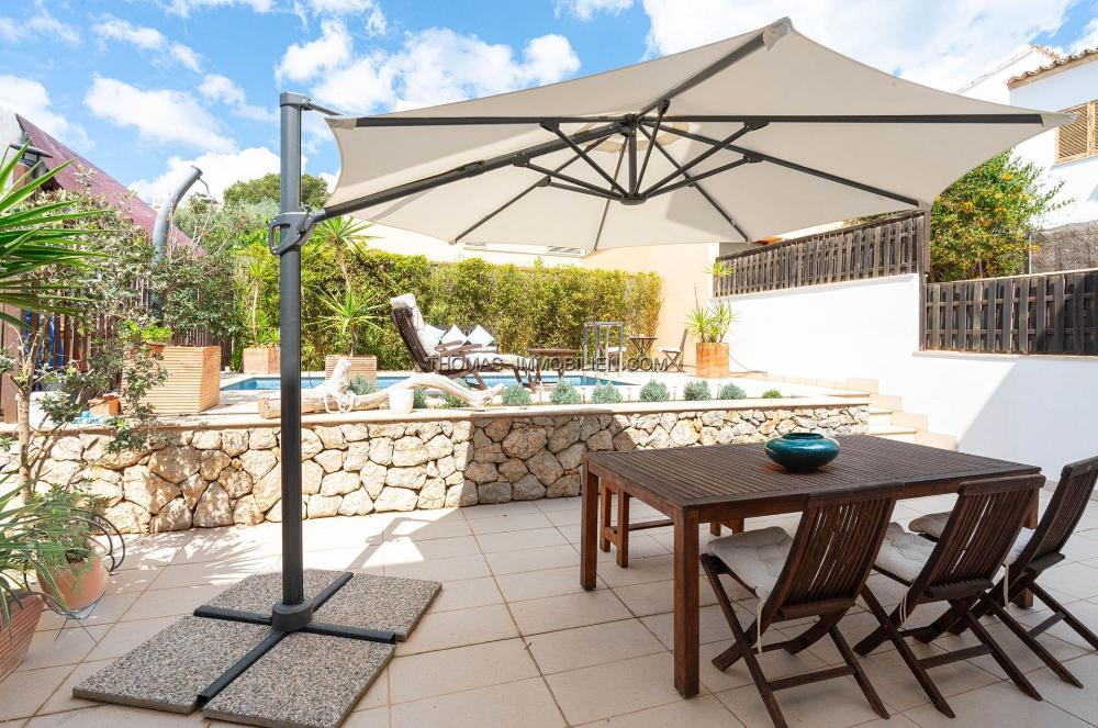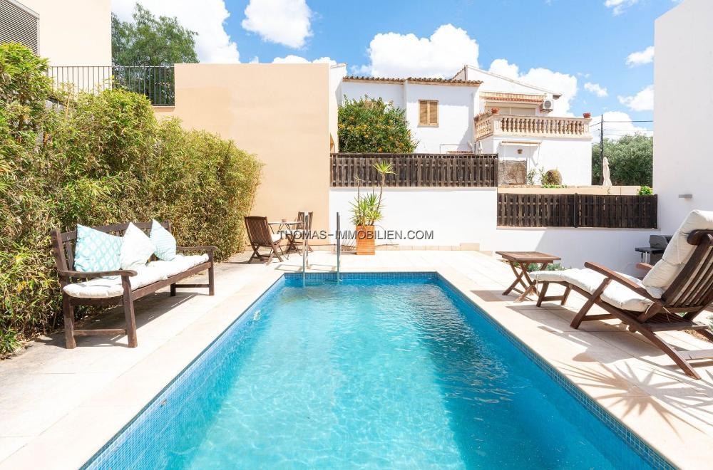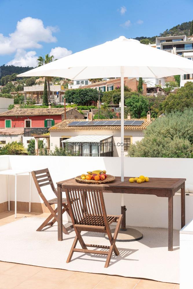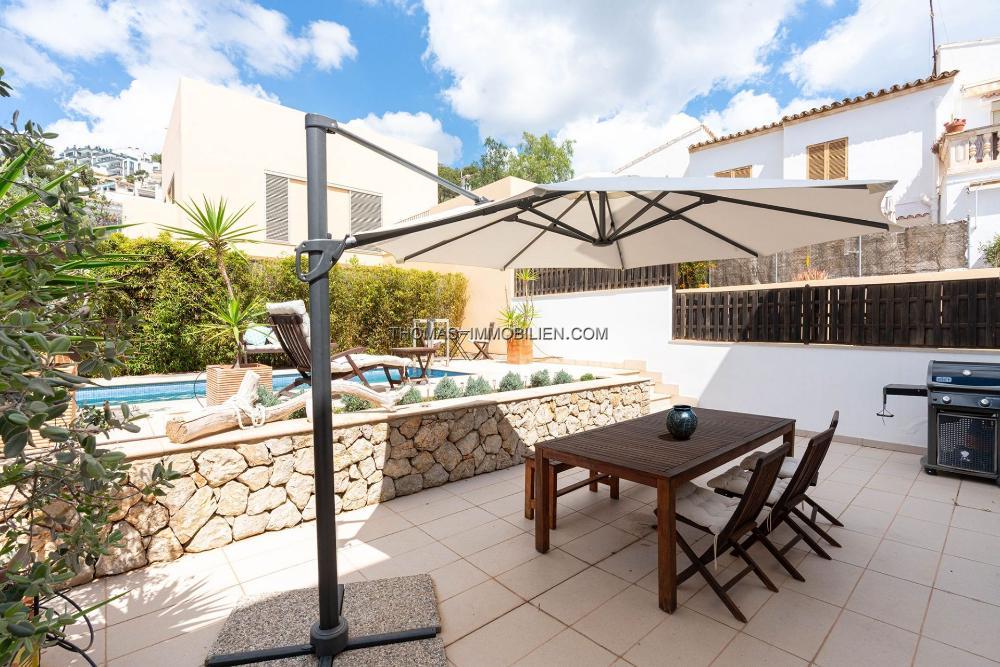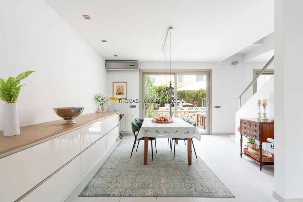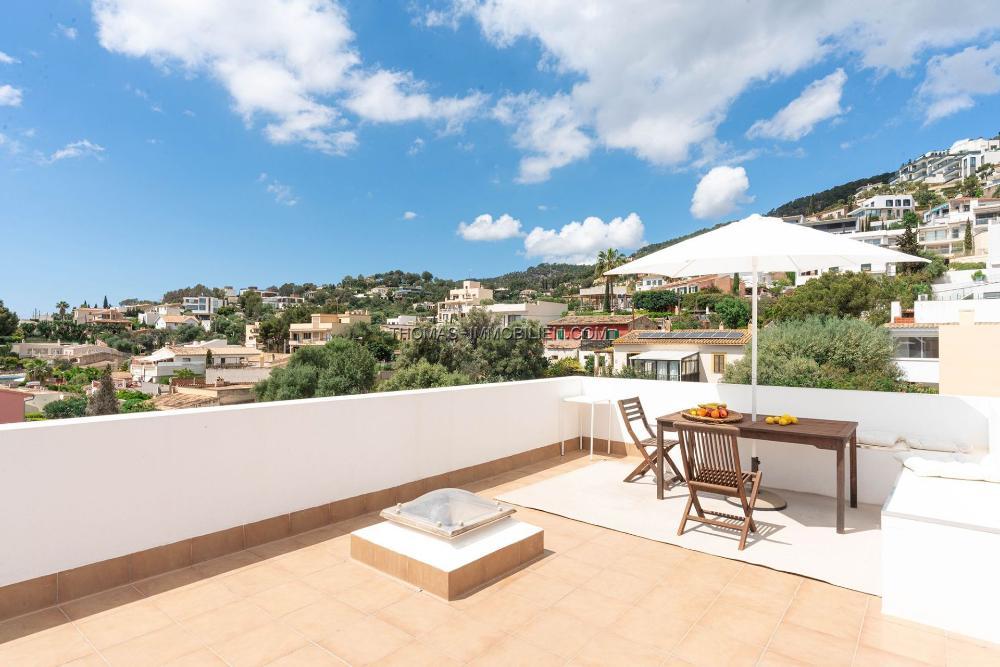 Auf der Eingangsebene befinden sich eine geräumige, voll ausgestattete Küche und ein Wohnzimmer. Diese Ebene bietet auch Zugang zu einer Terrasse und einem privaten 12 m² großen Außenpool. Eine Etage höher befinden sich drei Schlafzimmer und zwei Badezimmer, eines davon en-suite. Zwei der Schlafzimmer bieten Meerblick, während das dritte Zugang zu einer kleinen privaten Terrasse hat. Eine Treppe führt zur Dachterrasse, die einen Blick auf das Meer und Palma bietet.