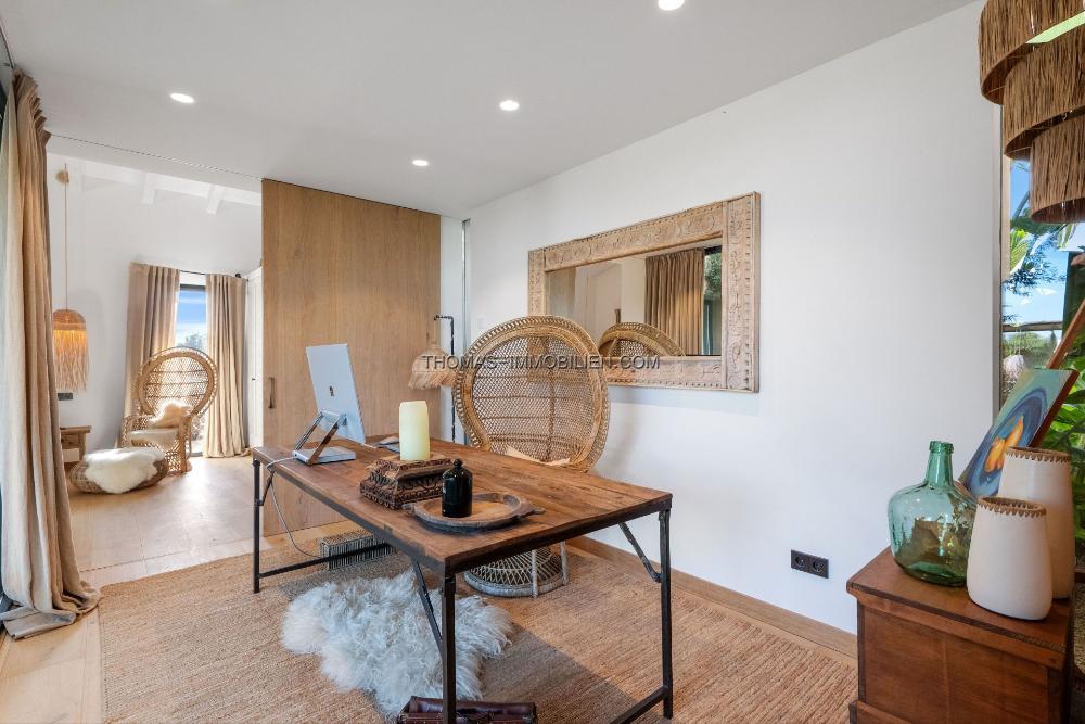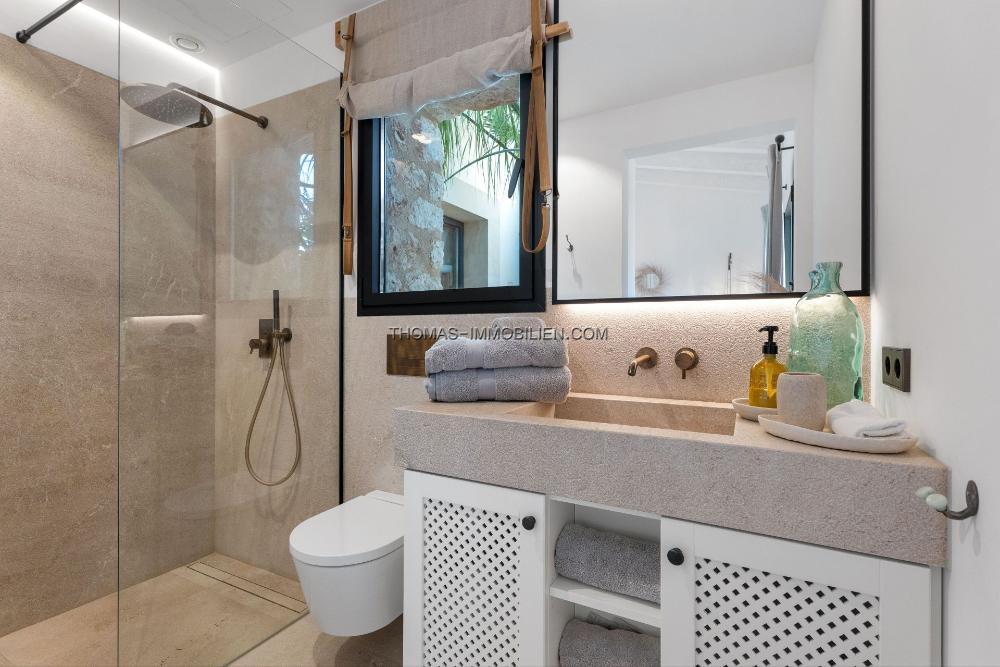 Im Jahr 2022 mit akribischer Liebe zum Detail fertiggestellt, vereint dieses 460 m² große Luxus-Anwesen natürliche Materialien, modernen Komfort und zeitlosen mediterranen Charme. Die Hauptresidenz verfügt über 4 geräumige Schlafzimmer, jedes mit eigenem Bad, durchdacht gestaltet mit natürlichem Licht und hochwertigen Materialien. Weitläufige, lichtdurchflutete Wohnbereiche öffnen sich zu mehreren Terrassen, die einen atemberaubenden Blick auf die Gärten und die Landschaft bieten. Jeder Raum lädt zur Entspannung und Reflexion ein.
