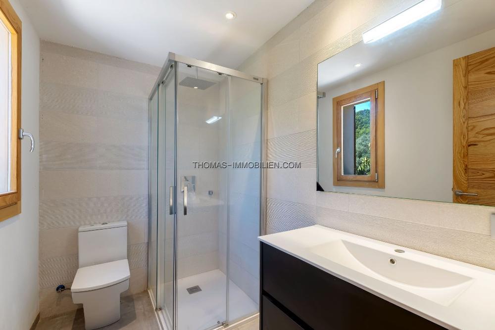 Der Wohnbereich erstreckt sich über ca. 387 m² auf zwei Ebenen. Das Erdgeschoss wurde vor etwa drei Jahren teilweise renoviert und verfügt über einen offenen Wohn- und Essbereich mit direktem Zugang zu einer geräumigen Terrasse, die sich ideal zum Essen im Freien und Genießen des Panoramablicks eignet. Eine voll ausgestattete Küche, drei Doppelschlafzimmer mit Einbauschränken und drei Badezimmer befinden sich ebenfalls auf dieser Etage.