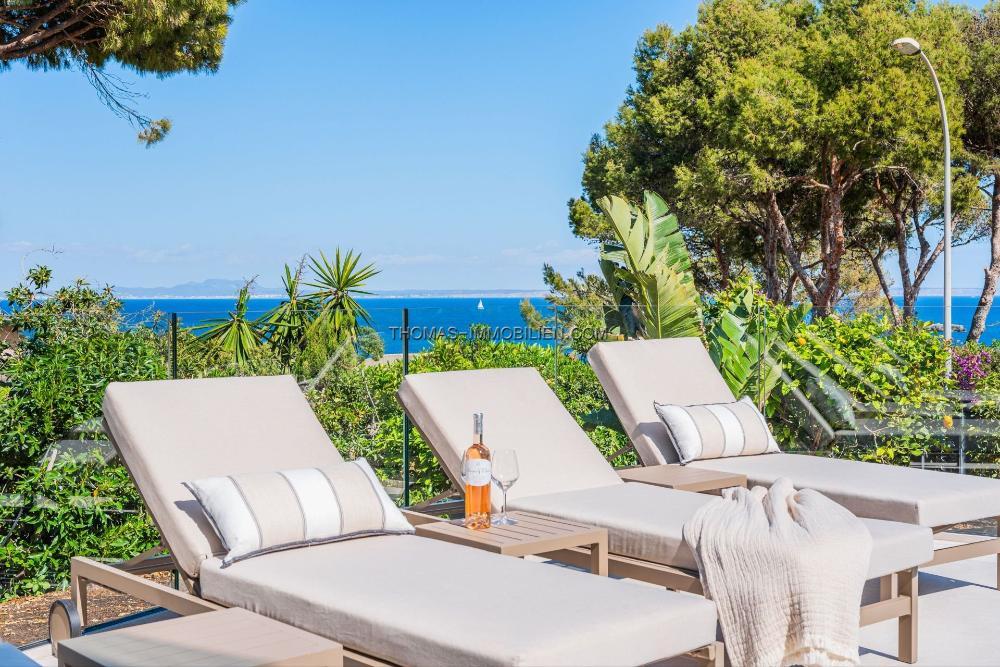 Das Anwesen liegt an einer privilegierten zweiten Meereslinie und genießt eine atemberaubende Aussicht auf das Meer von jedem Raum aus. Das ebene und ruhig gelegene Grundstück garantiert sowohl hervorragende Privatsphäre als auch eine ungestörte Wohnatmosphäre.